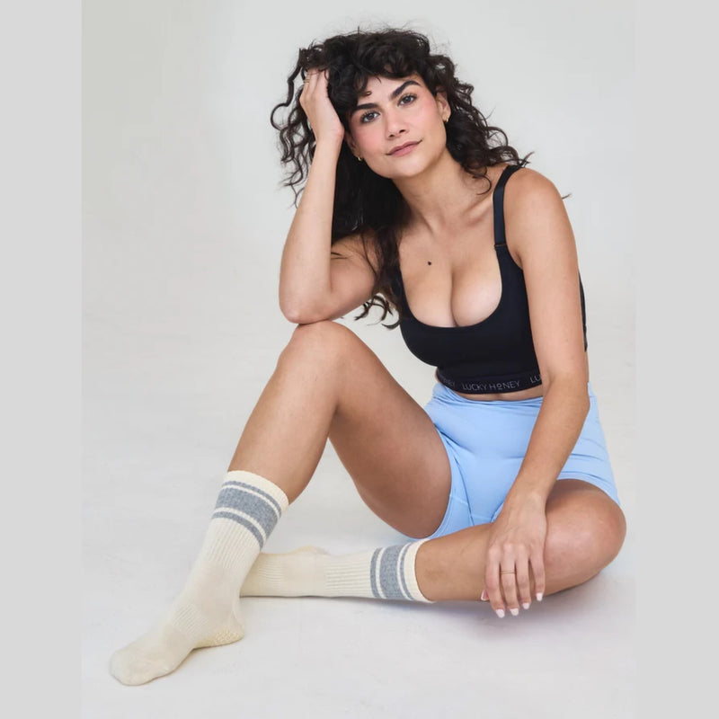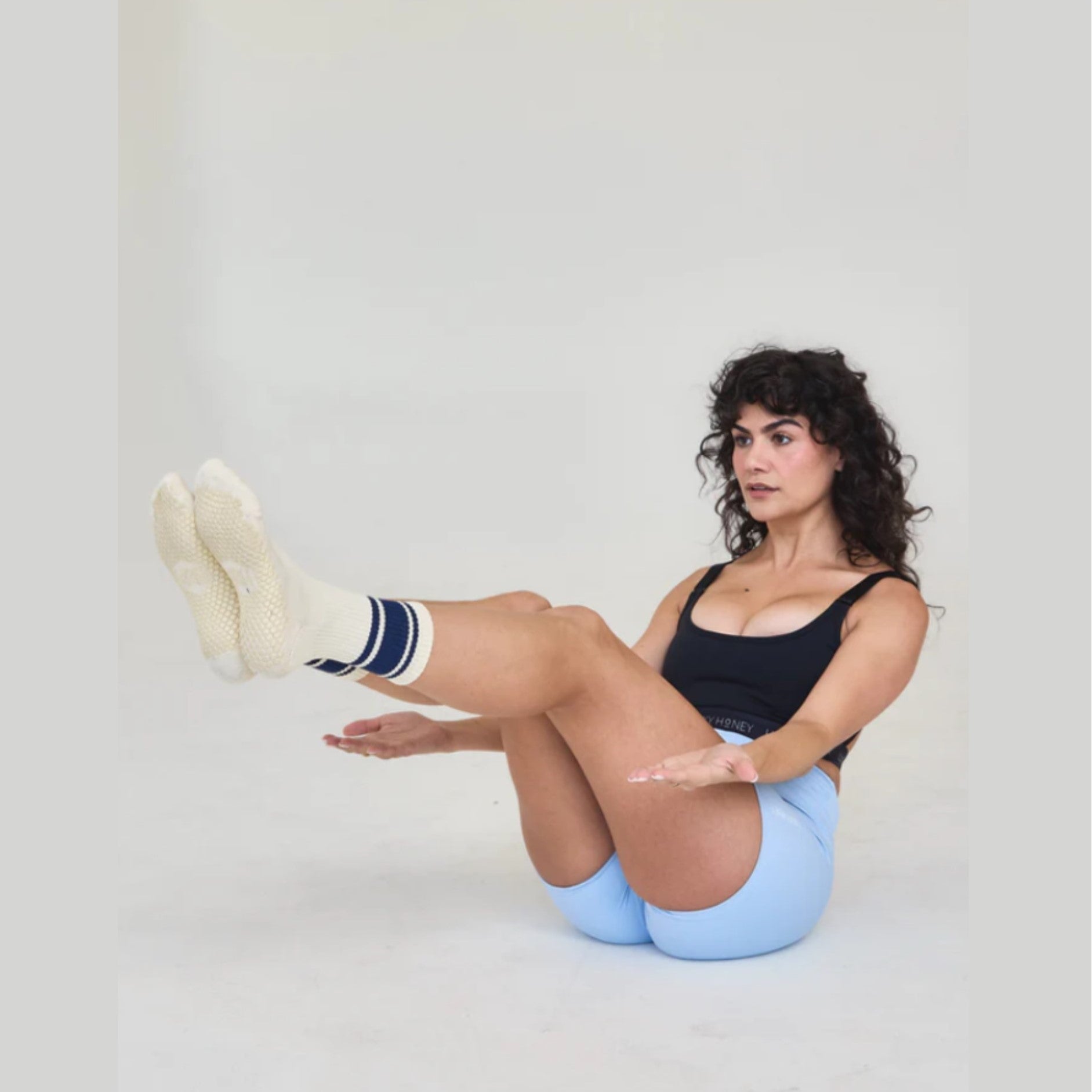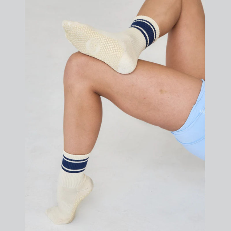 Enhance your activewear collection with The Crew Grip Socks. These socks deliver the perfect blend of style and performance, featuring a timeless crew design and versatile colors to match any outfit. The non-slip grip offers secure footing during yoga, barre, or Pilates, while the soft, breathable fabric ensures lasting comfort. Whether you're working out or relaxing, these socks provide the ideal combination of practicality and flair for every occasion. Now available in Grapefruit, Olive/Black, Maroon/White, Lemon, Grey, Multi, and Navy!