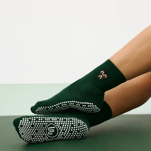 Scrunch Oat Emerald Stripe Grip Socks (Barre / Pilates)