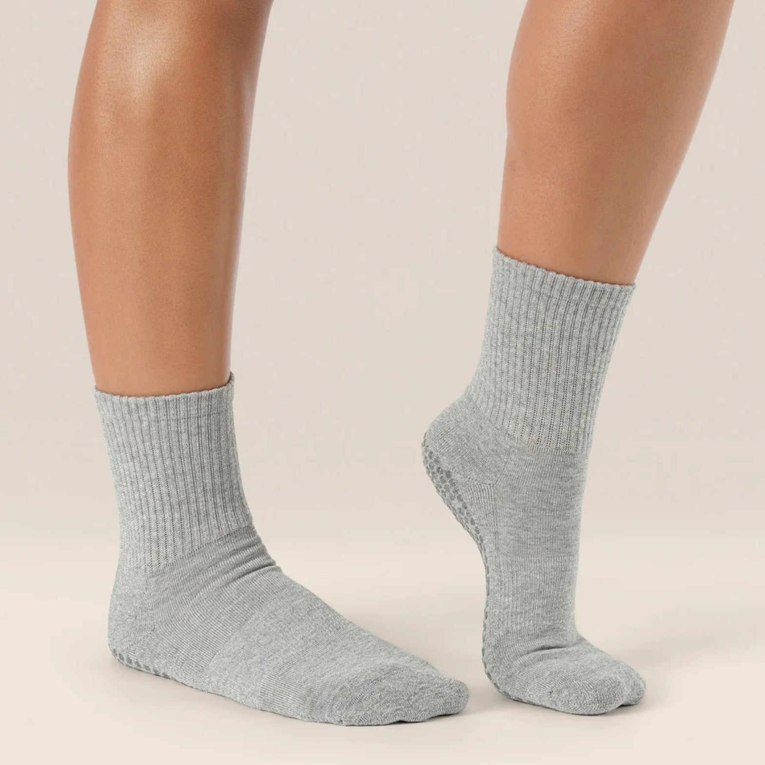 These grips from Move Active with a sparkly finish will complete your workout look! Featuring a mid-calf crew cut to keep your feet and legs warm during any workout, these non-slip socks are a staple in and out of the studio. Designed for improved stability, safety, and performance for yoga, pilates, and barre styles of exercise. Crafted from high-quality, breathable cotton, with built-in compression arch support, your feet will thank you.