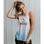 Oh, Plies.  Pretty Please, let this be the final 10.  This best selling barre muscle tank is now revamped in an adorable cotton candy pink and blue dye - perfect for warmer weather.  The barre tank is crazy soft and features deep side cut armholes and raw edges for a rocker chic vibe.  Fits true to size; for a looser fit, size up.