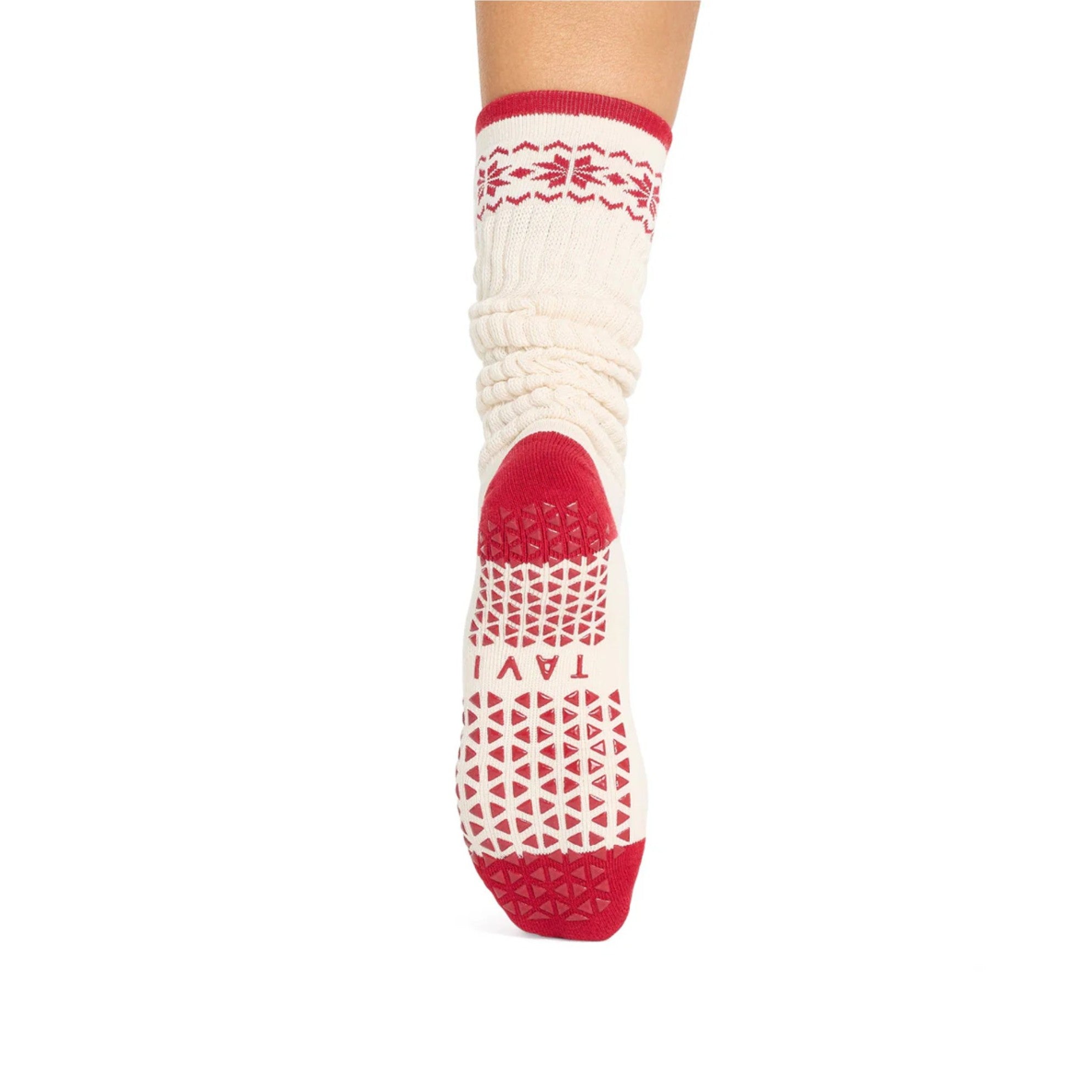 A throwback crew style sock now with a fun scrunchy style. Tavi Active's stellar grip sock pattern safely moves you through your barre, Pilates, and yoga classes by giving your feet a strong grip to the floor while giving you that nearly barefoot feel. Stacy will keep your muscles warm and ready to perform. Features Tavi patented non slip sole. Perfect for Yoga, Pilates and Barre. Made with super soft, organic cotton in a variety of great colors.