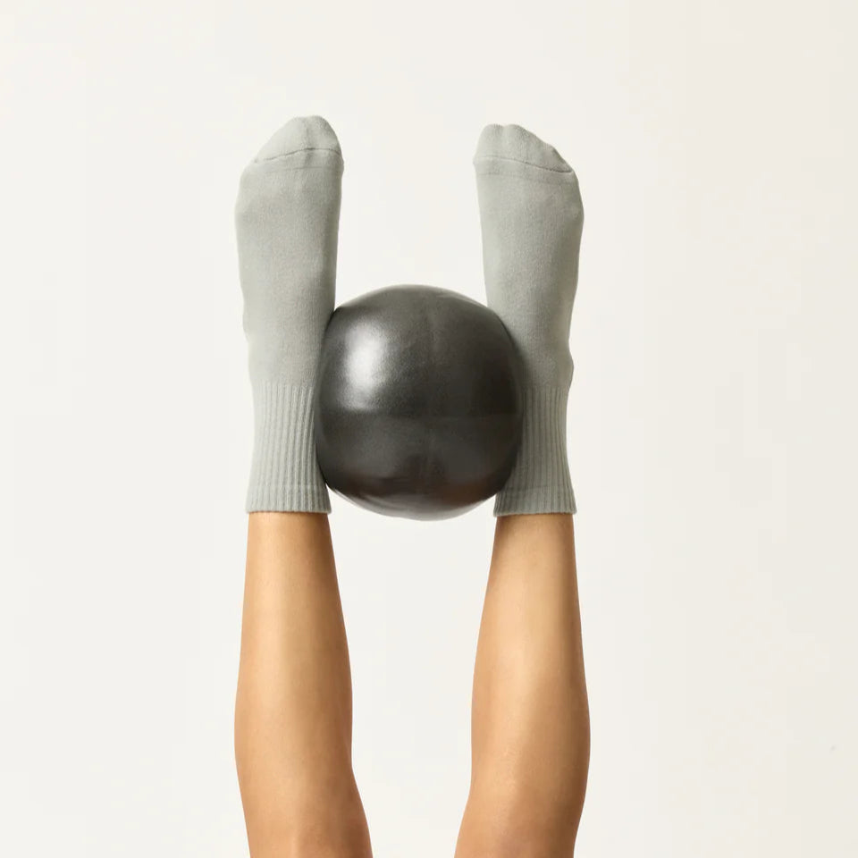Step into your workout routine with style and functionality with the Essential Crew grip socks! These socks combine a sleek, minimalist design with superior grip technology, ensuring stability and confidence during every movement. The soft, breathable fabric keeps your feet comfortable while the chic beige and blue palette adds a touch of sophistication to your activewear. Perfect for Pilates, yoga, or barre, they're crafted for optimal performance and a fashionable edge. Embrace your studio era with the perfect blend of practicality and flair!