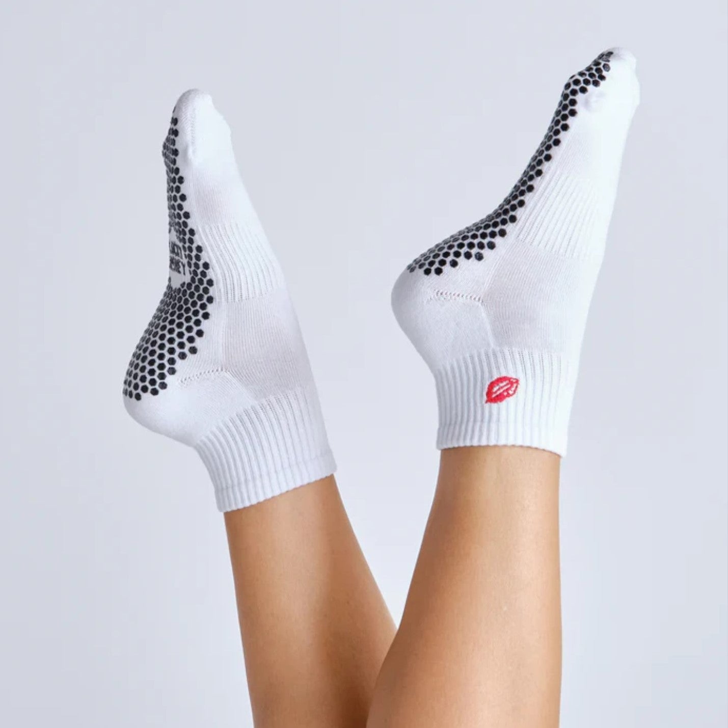 Meet Harlow. The cult favorite ankle covering, boyfriend style with an updated twist. Cute little embroidered designs sitting right on the ankle, these socks are showstoppers and for perfect studio to street style. Featuring the brand's signature hexagonal silicon grip from toe to heel. More protection + stability than the traditional grip sock.