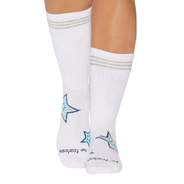 Be Fearless Crew - White Starburst Grip Socks (Barre / Pilates)