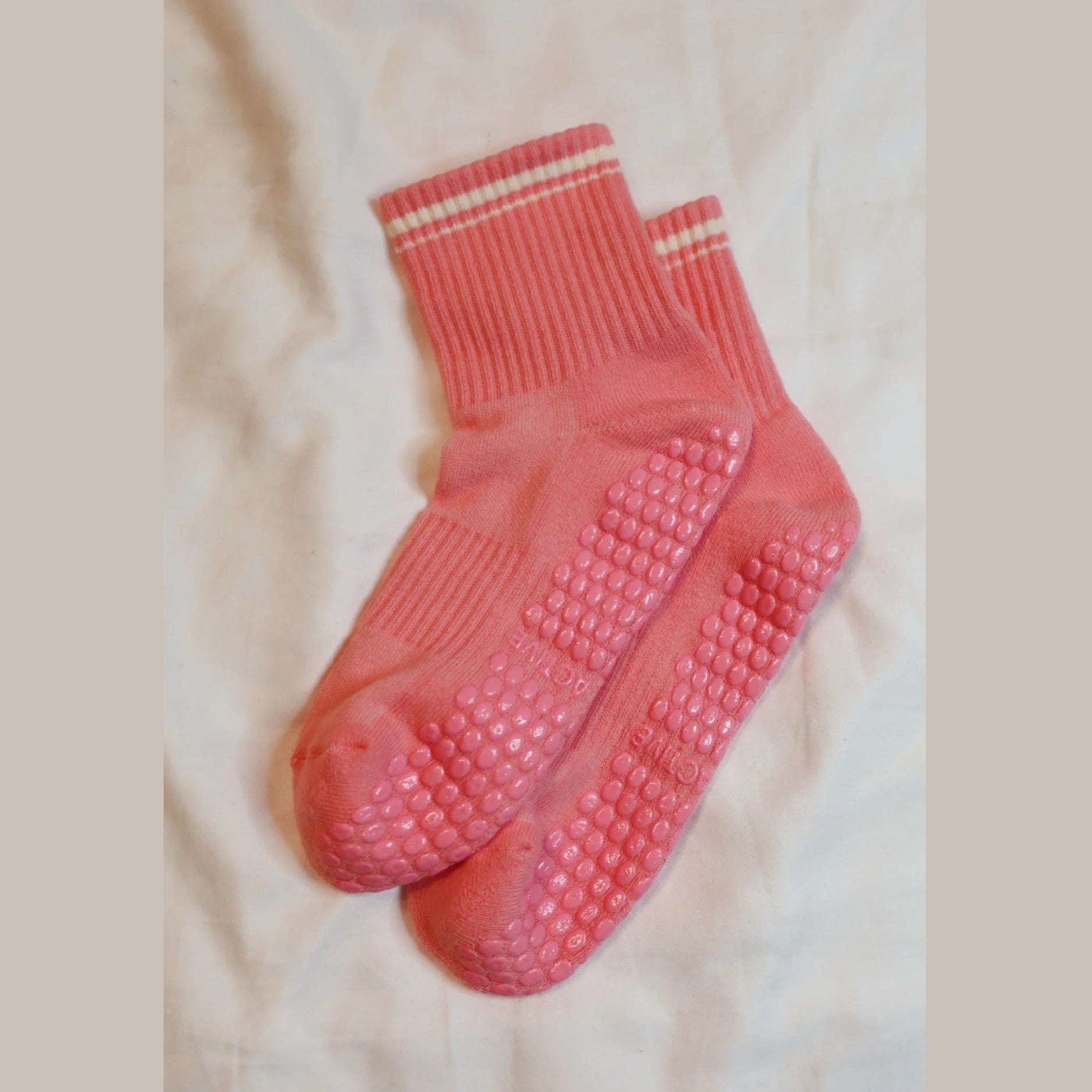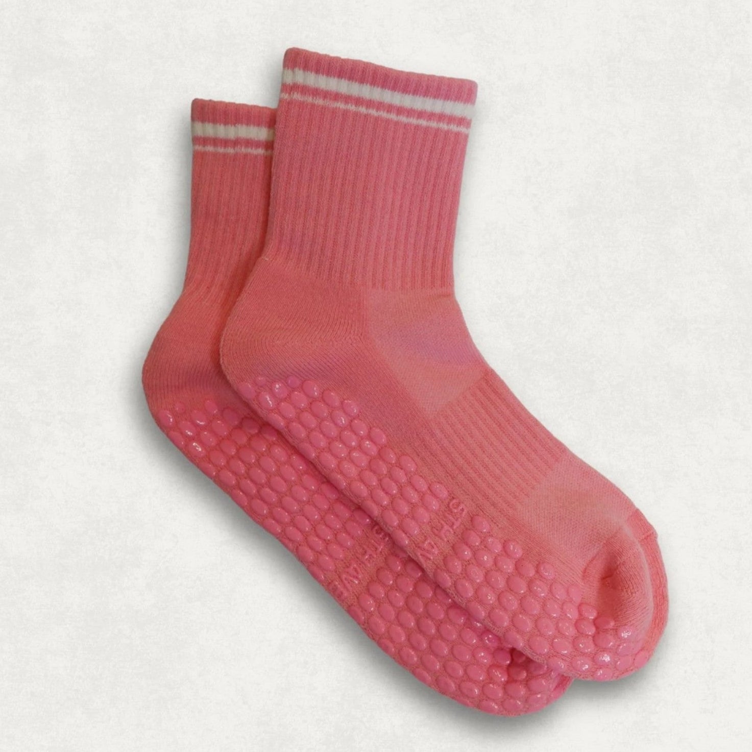 Cozy Pink Quarter Crew Grip Socks (Barre / Pilates)