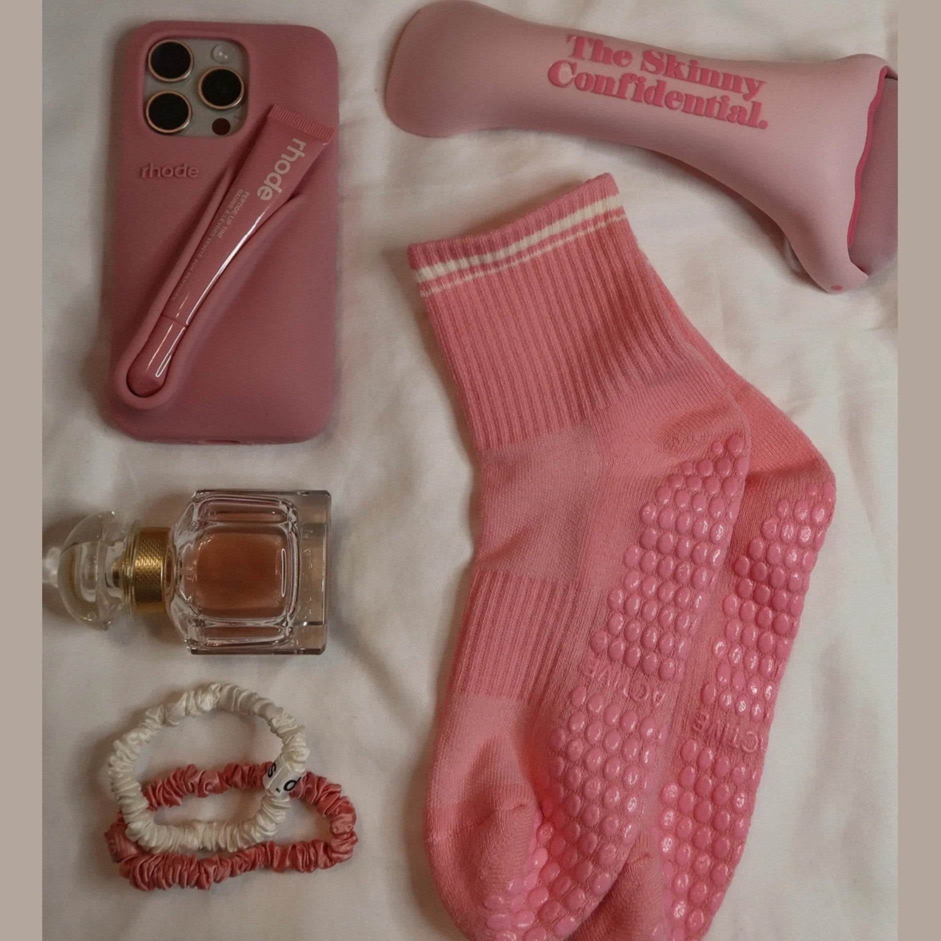 The Cozy Pink Quarter Crew Grip Socks are the perfect blend of softness, warmth, and everyday charm, designed to keep you comfortable and steady wherever your day takes you. Their gentle pink tone adds a cozy, feel-good touch, while the quarter crew height offers just the right amount of coverage for studio sessions or lounging at home. Featuring premium nonslip grips, these socks help you stay grounded during Pilates, yoga, or barre. Made from plush, breathable fabric, they wrap your feet in comfort - making every step feel warm, secure, and effortlessly cute.