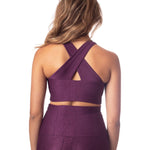 Way to shine! The Bordeaux Shimmer bra features wide criss-cross straps in a gorgeous deep wine hue and black details. A fully lined bra with a built-in elastic to give you the perfect amount of coverage and support and shimmer as you move. Pair with the Bordeaux Shimmer Long Legging to make it a set!
