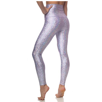 Best selling Emily Hsu leggings now in a stunning lavender shade.  Your mermaid dreams have come true. You can now move your body in these stunning lavender mini fish scales that sparkle and shine with iridescence during every movement. It's equally beautiful in or out of the studio!  Pair it with the Lavender Mermaid Crop Bra to make it a gorgeous set.