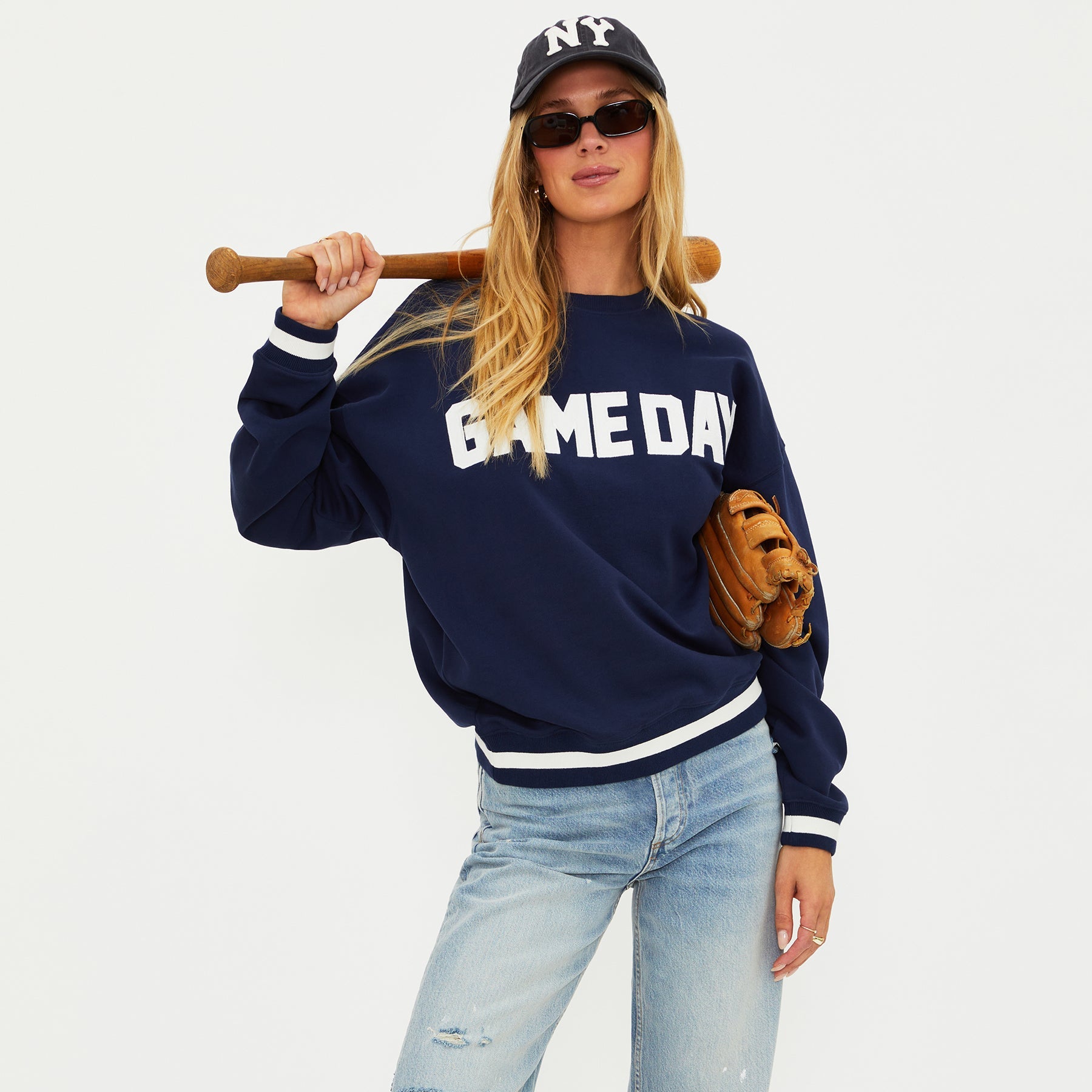 It's game time! The Devyn Sweatshirt from Beach Riot is a classic crewneck sweatshirt featured in a slouchy, relaxed fit and soft fabrication with GAMEDAY written across the front in varsity style lettering with ribbed knit hemlines. The perfect cozy piece for the season to throw on top of your workout set or pair with your favorite pair of jeans. Size up if you want the oversized look