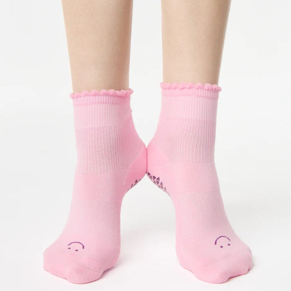 Happy Ankle Grip Socks - Baby Pink (Barre/Pilates)