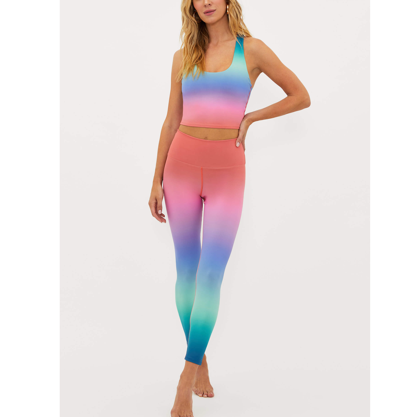 The best-selling Piper Legging is now available in the vibrant High Tide Sunset design! The perfect blend of comfort, style, and beach-inspired beauty! The rainbow like colors will take the beach with you wherever you go. A high-waisted, soft-to-touch style that fits like a glove. Experience ultimate freedom of movement, whether you're hitting the gym, practicing yoga, or simply lounging in style.