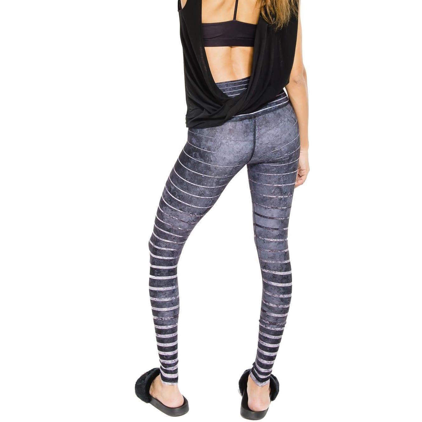 This fan favorite style is back! A classic linear print by Niyama Sol in a cool, dark gray color. Niyama Sol leggings are eco-friendly and the softest to touch. The airy light fabric is made of recycled water bottles.