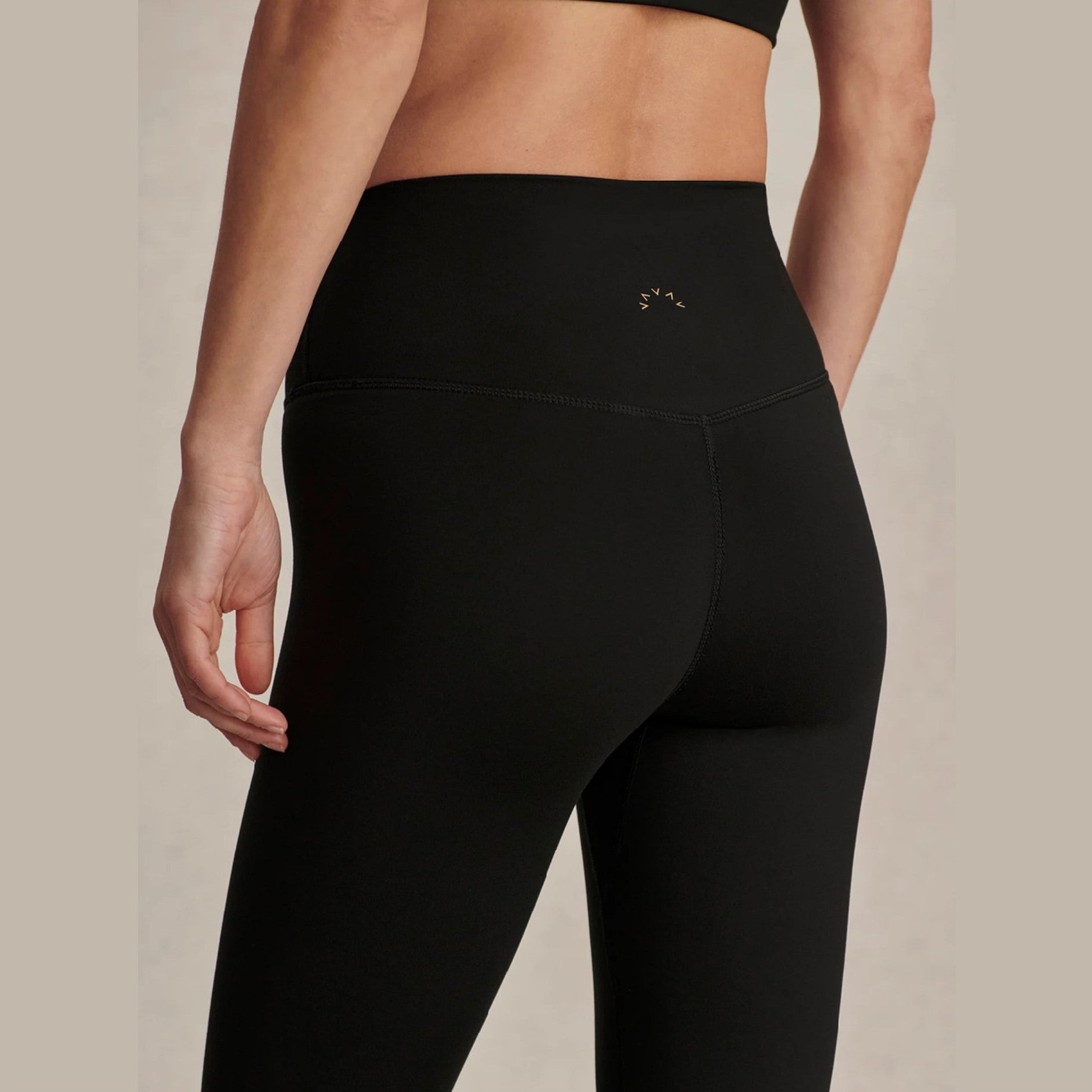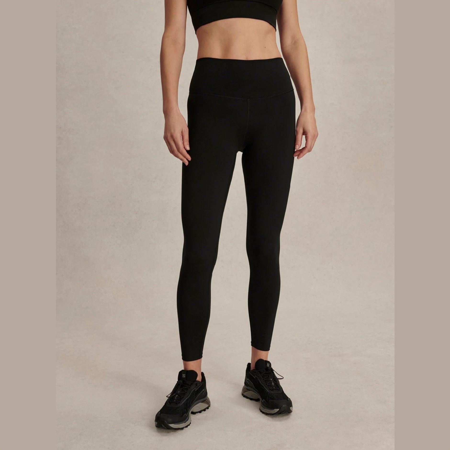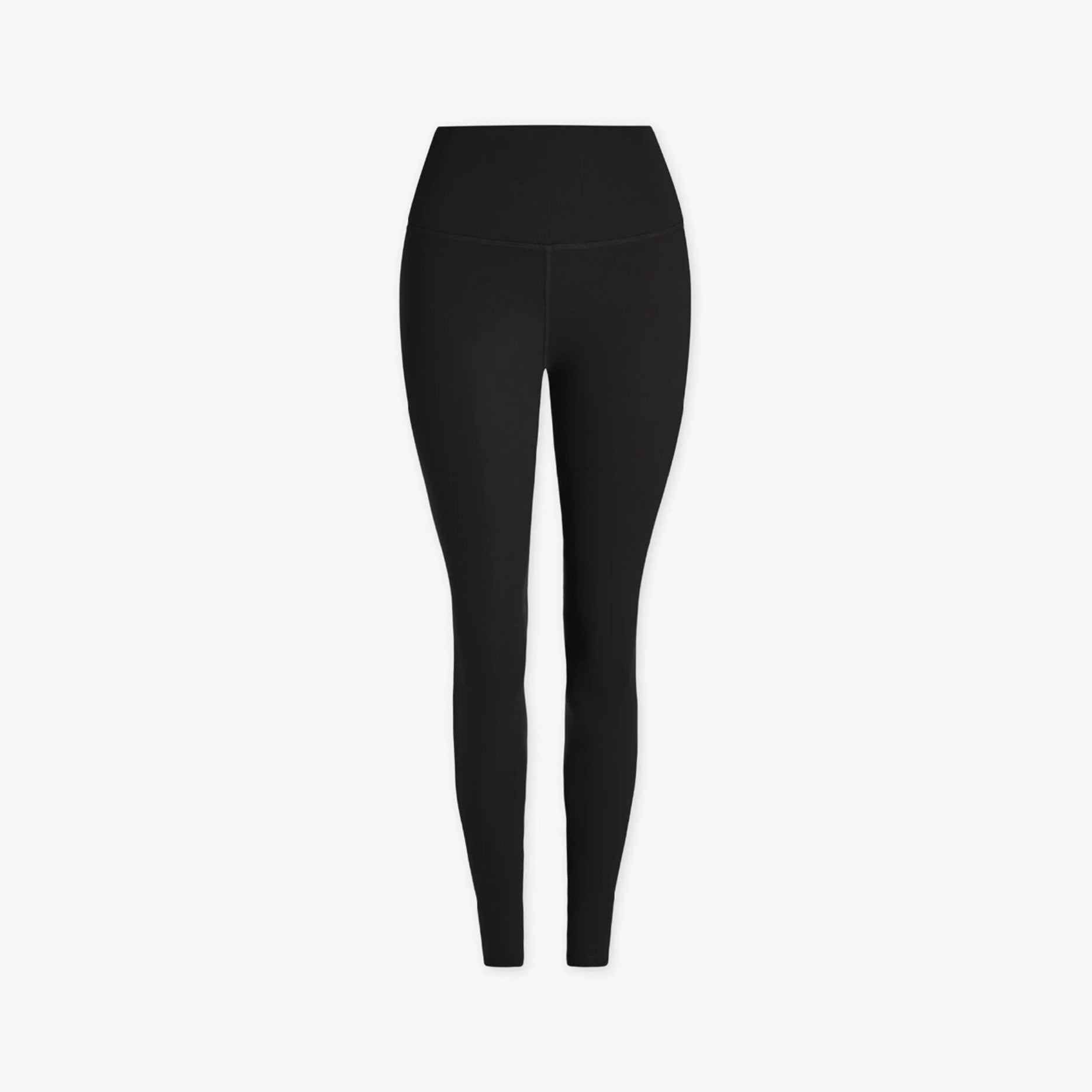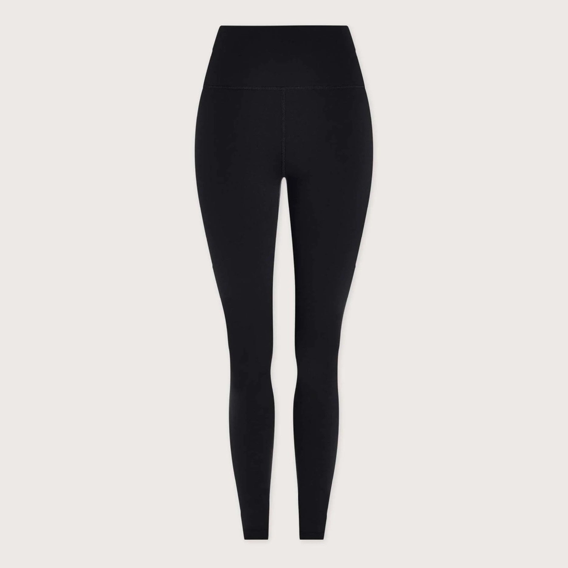 Leggings have a high rise. The waist of leggings sits above the navel.