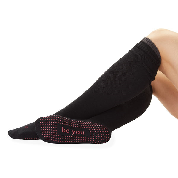 Be You Knee High Grip Socks - Black Cranberry Charcoal (Barre / Pilates)