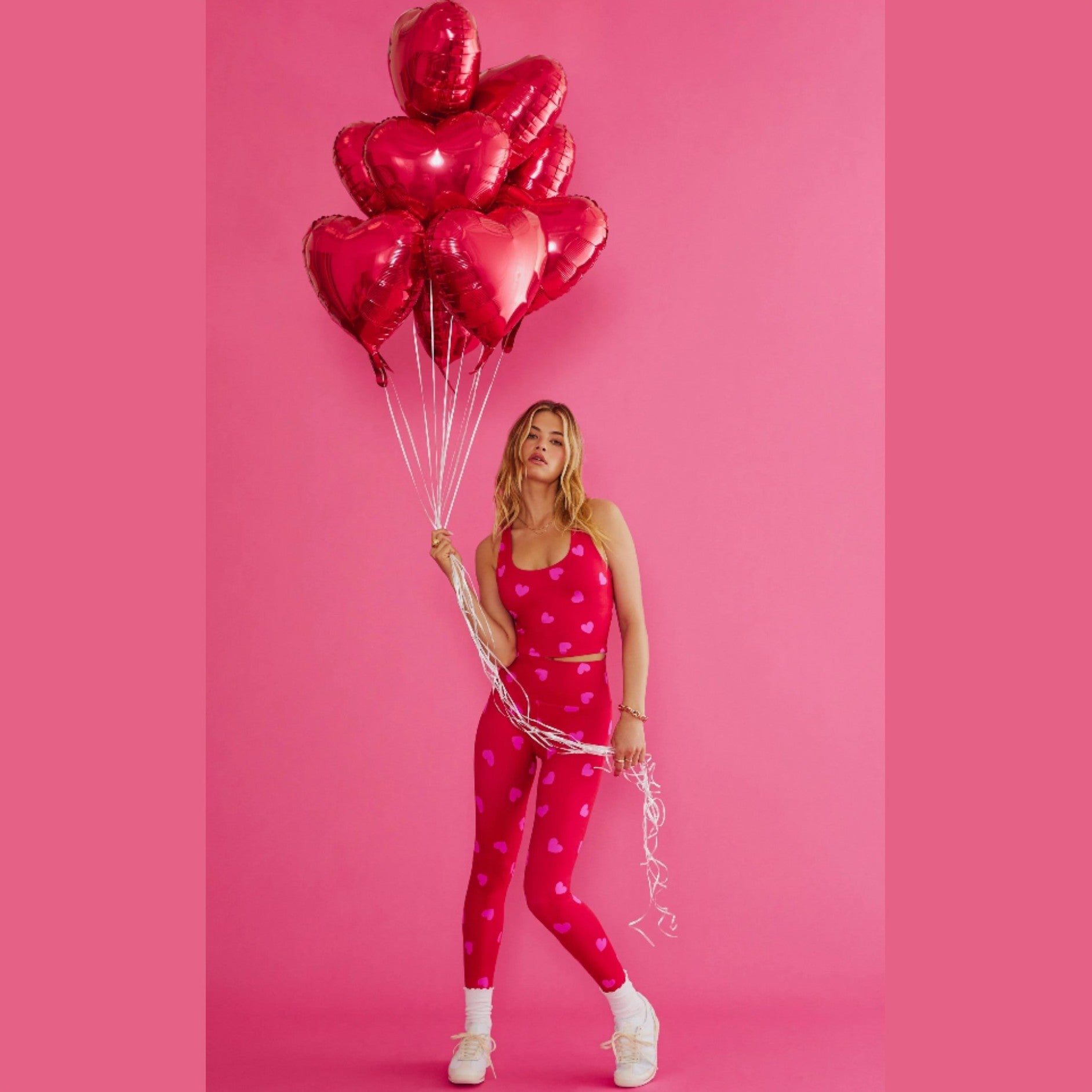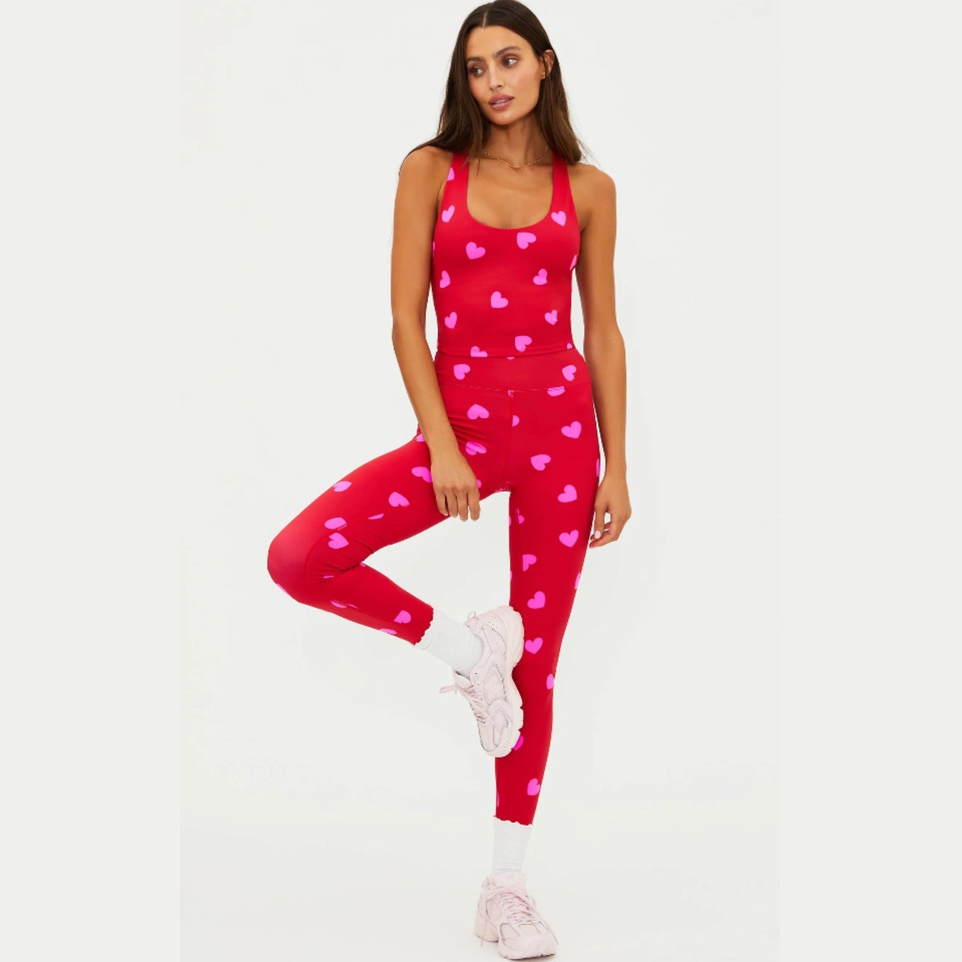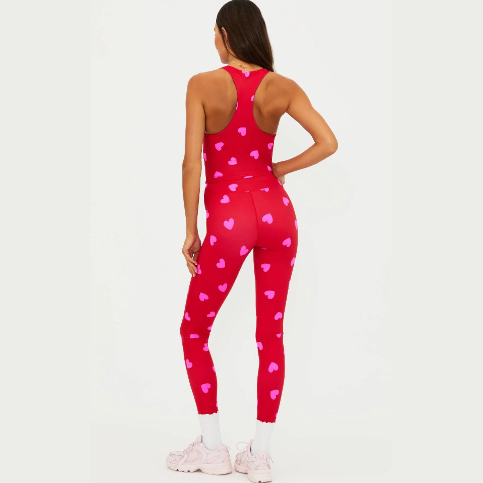 The Piper Legging - Royal Red Hearts make bold, playful statement while delivering the comfort and support you want in your everyday activewear. Featuring a rich royal red base adorned with charming heart details, these leggings add a fun, confident edge to your workout or off-duty look. the high-rise waistband offers a flattering, stay-put fir, while the soft, breathable, and stretchy fabric moves effortlessly with you through Pilates, yoga, or daily wear. Stylish yet functional, they're designed to make you feel strong, comfortable, and full of heart with every step. Pair it with the matching Yara Top in Royal Red Hearts to complete the set!