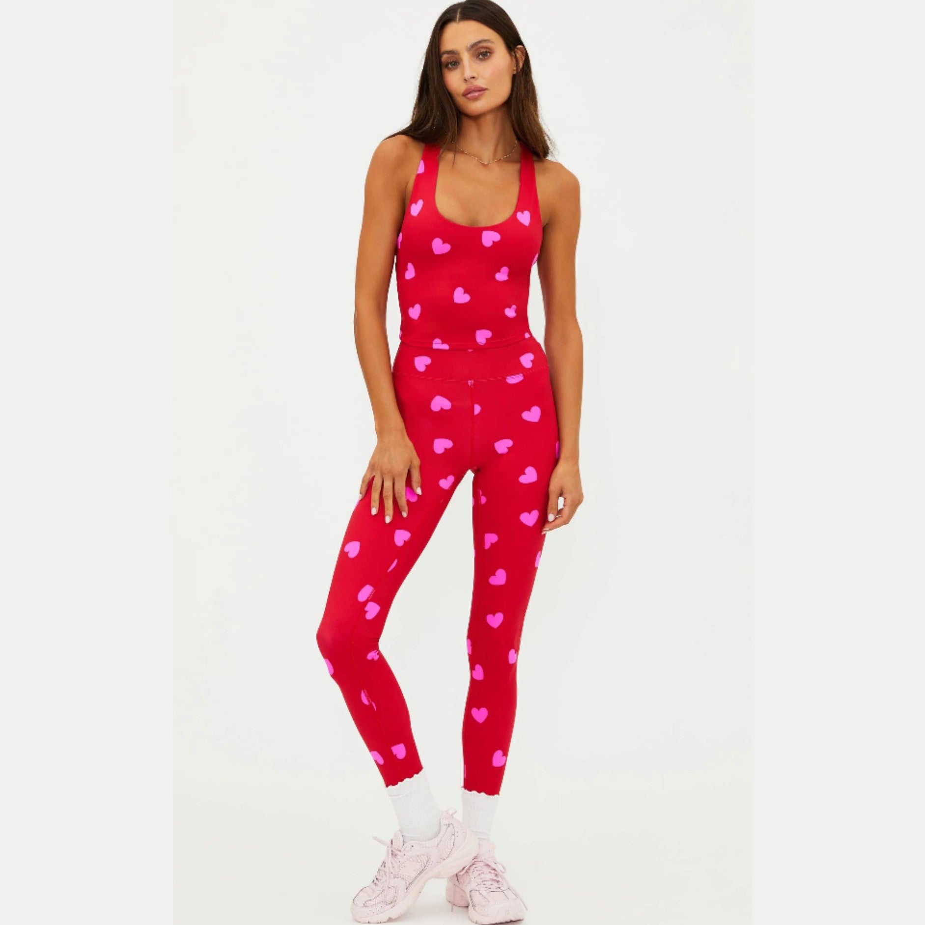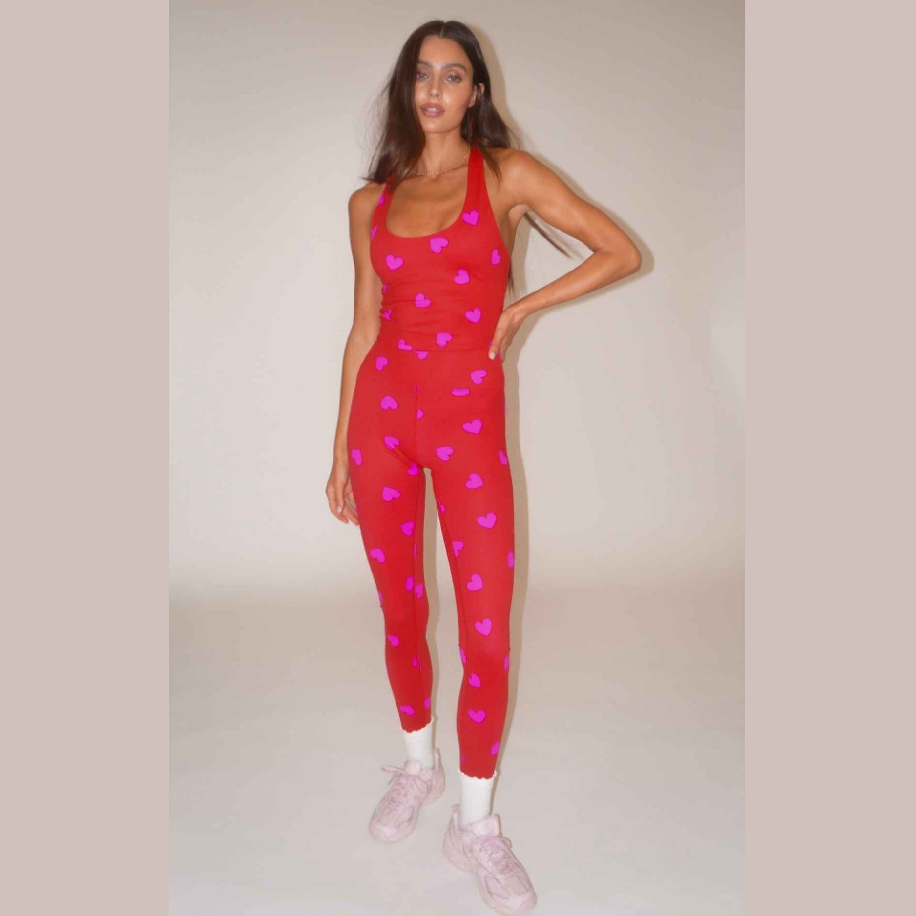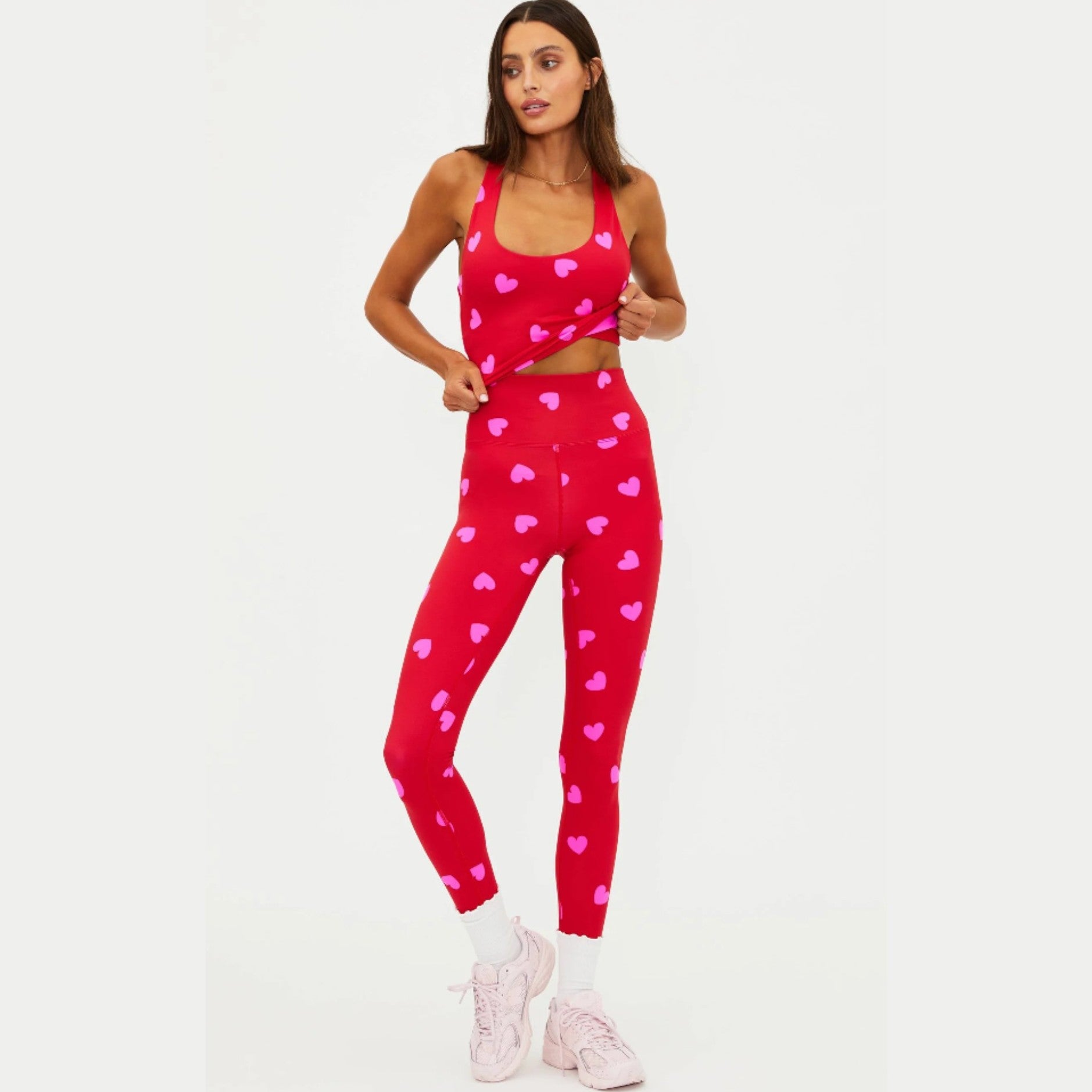 The Piper Legging - Royal Red Hearts make bold, playful statement while delivering the comfort and support you want in your everyday activewear. Featuring a rich royal red base adorned with charming heart details, these leggings add a fun, confident edge to your workout or off-duty look. the high-rise waistband offers a flattering, stay-put fir, while the soft, breathable, and stretchy fabric moves effortlessly with you through Pilates, yoga, or daily wear. Stylish yet functional, they're designed to make you feel strong, comfortable, and full of heart with every step. Pair it with the matching Yara Top in Royal Red Hearts to complete the set!