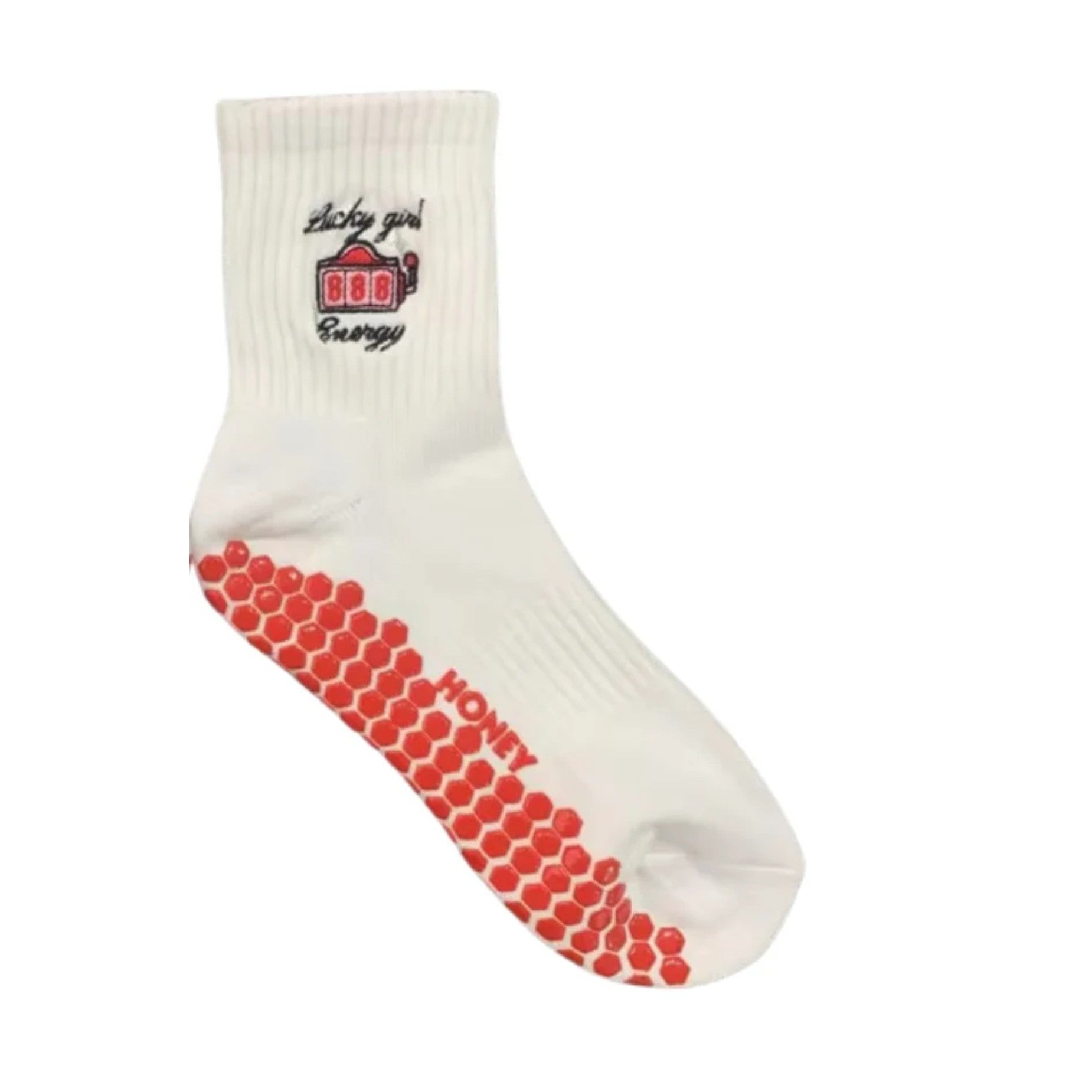 The Lucky Girl Socks add a fun, feel-good charm to your workout with their playful design and uplifting vibe. Perfect for Pilates, yoga, barre, or lounging, they combine personality with performance to keep you moving confidently. Premium nonslip grips provide steady traction through every pose and stretch, while the soft, breathable fabric keeps your feet comfortable all day. Cute, cozy, and a little bit lucky, these socks are the perfect way to bring positive energy and style to every step.