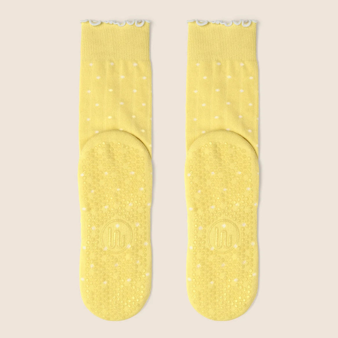 Featuring grip socks adorned with polka dots and delicate ruffles, these grip socks will become your go-to pair for your workouts!