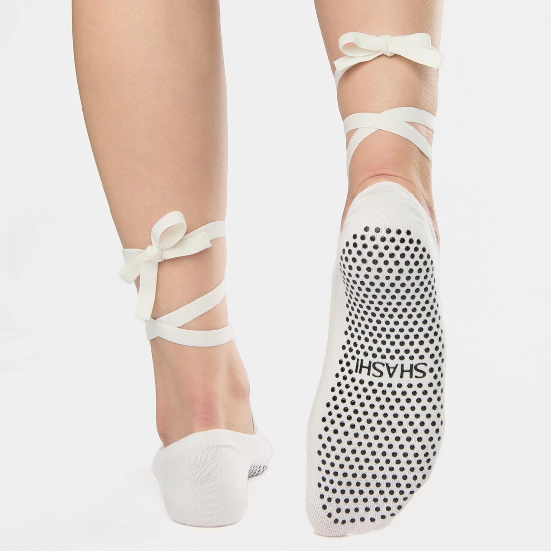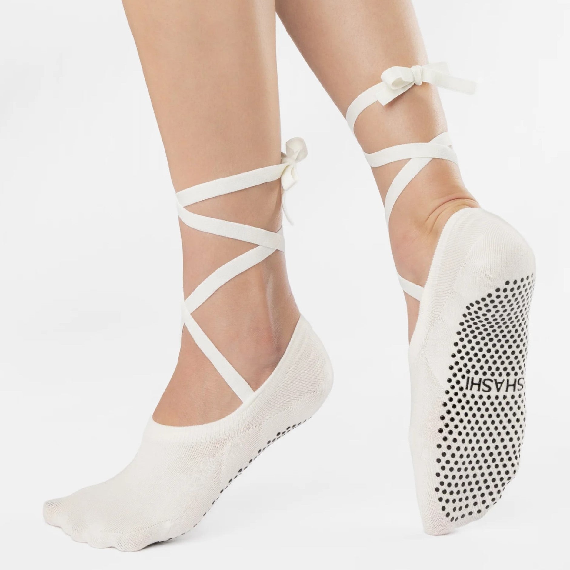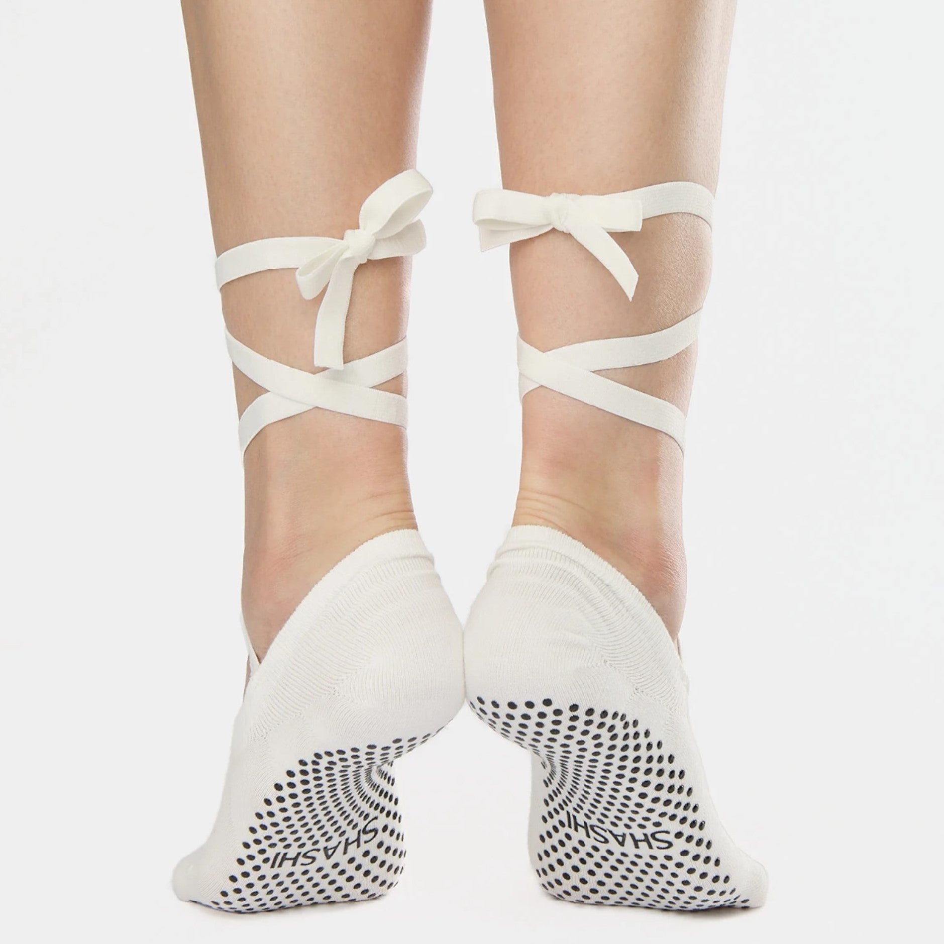 Channel your inner dancer with these Shashi ballet inspired grip socks. Featuring a style that is reminiscent of toe shoes, these adorable grip socks will be the perfect accent to your studio look.