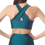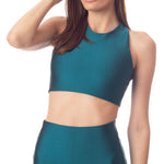 The Ultraluxe Peacock Crop Top features a luxurious silky fabrication in a dazzling peacock blue hue with a lustrous sheen. The performance fabric is a heavier weight with medium compression. Hidden built-in elastic offers support while creating a smooth and sleek line. Features a fully lined top with wide criss-cross straps for comfort as you move. Pair it with the matching Ultraluxe Peacock Sneaker Leggings for a super sleek head-to-toe look!