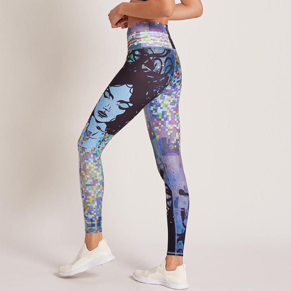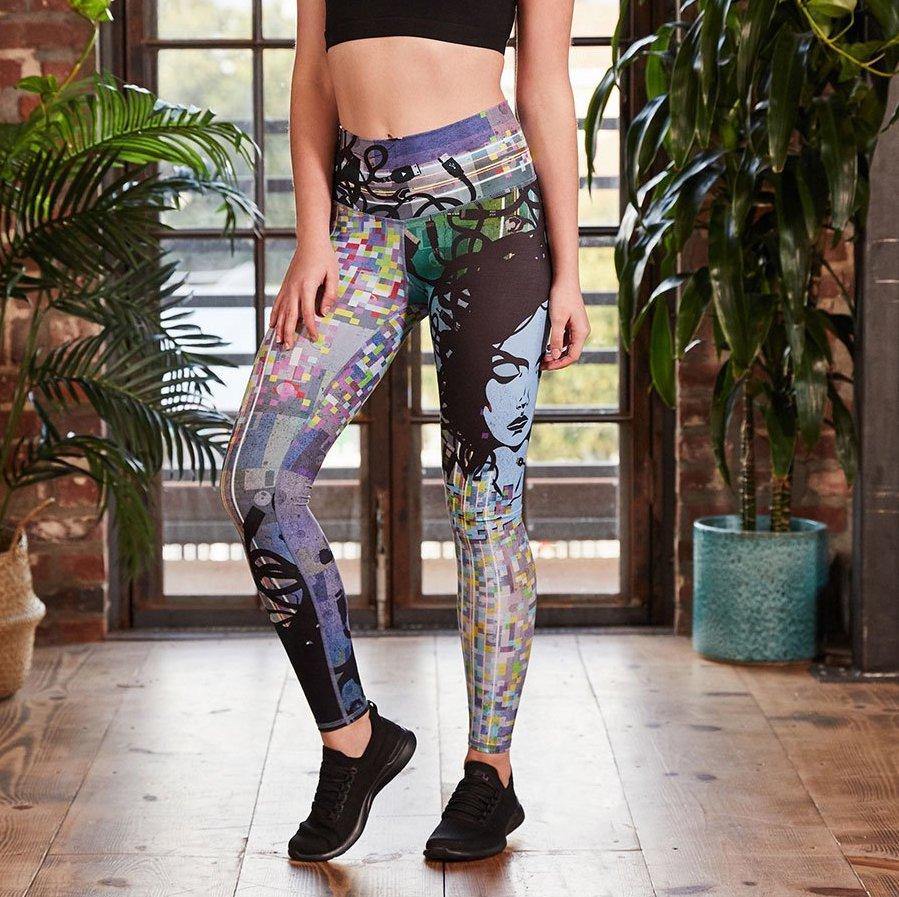 A collab with artist, Recycled Propaganda.  In honor of National Day of Unplugging on March 6th, his Modern Medusa, with hair of cords and adapters and plugs, seemed like the perfect fit.  These high waist leggings by Niyama Sol are gorgeous to look at, soft to touch.  Made of recycled water bottles, the fabric for these leggings are surprisingly soft and buttery, and yes! eco-friendly.