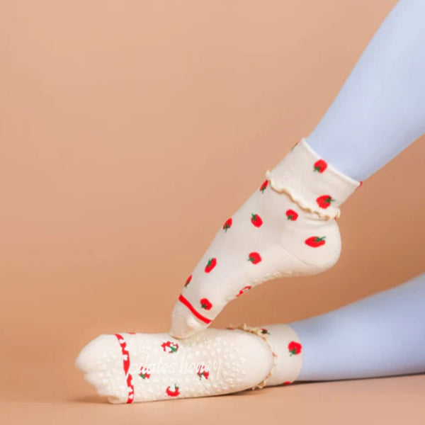Sweet Vine Foldover Ruffle Crew Grip Sock (Barre / Pilates)
