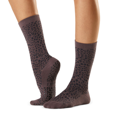 Kai Crew Grip Socks - Latte Stripe (Pilates / Barre)