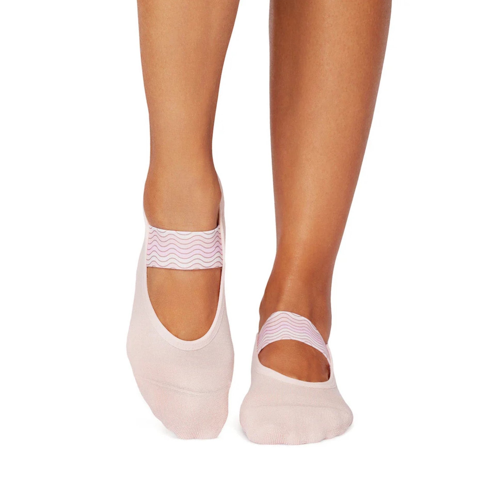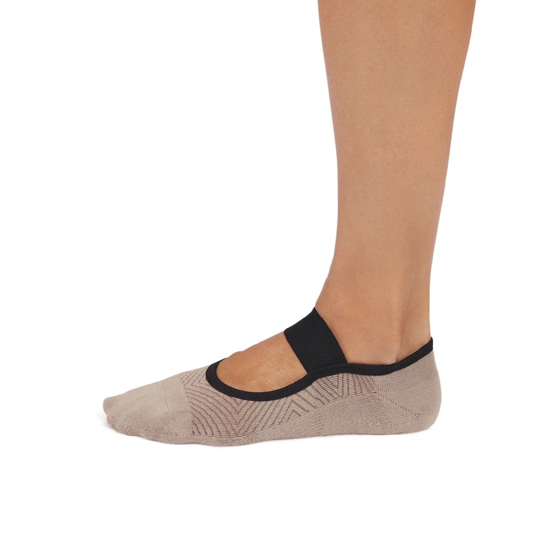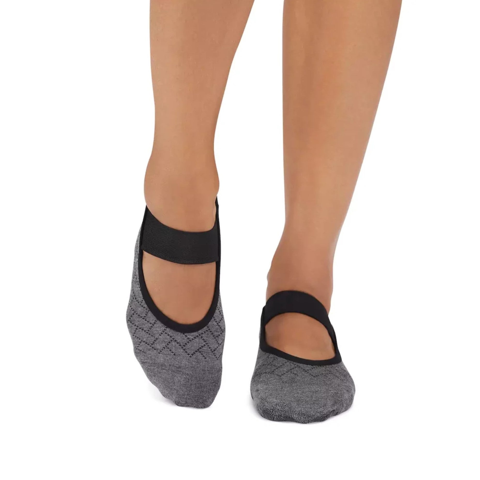 A mary-jane style grip sock that is the perfect intersection of form and function.  Lola’s embellished single mesh band adds more than a little style to your grip socks – it actually helps your sock stay put too. Its low profile hugs just below the ankle and the stellar grip sock pattern safely moves you through your workouts. Now in a variety of colors!