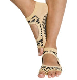 Tucketts toe-free style allows your toes to retain all sensation and engage your mind/body connection. Your toes have the freedom to make balance adjustments, while the grips and elastic trim keep you feeling confident and stable. Perfect for Yoga, Pilates, Barre, Martial Arts, Acro Sports, and more. Now in a stylish neutral leopard print!