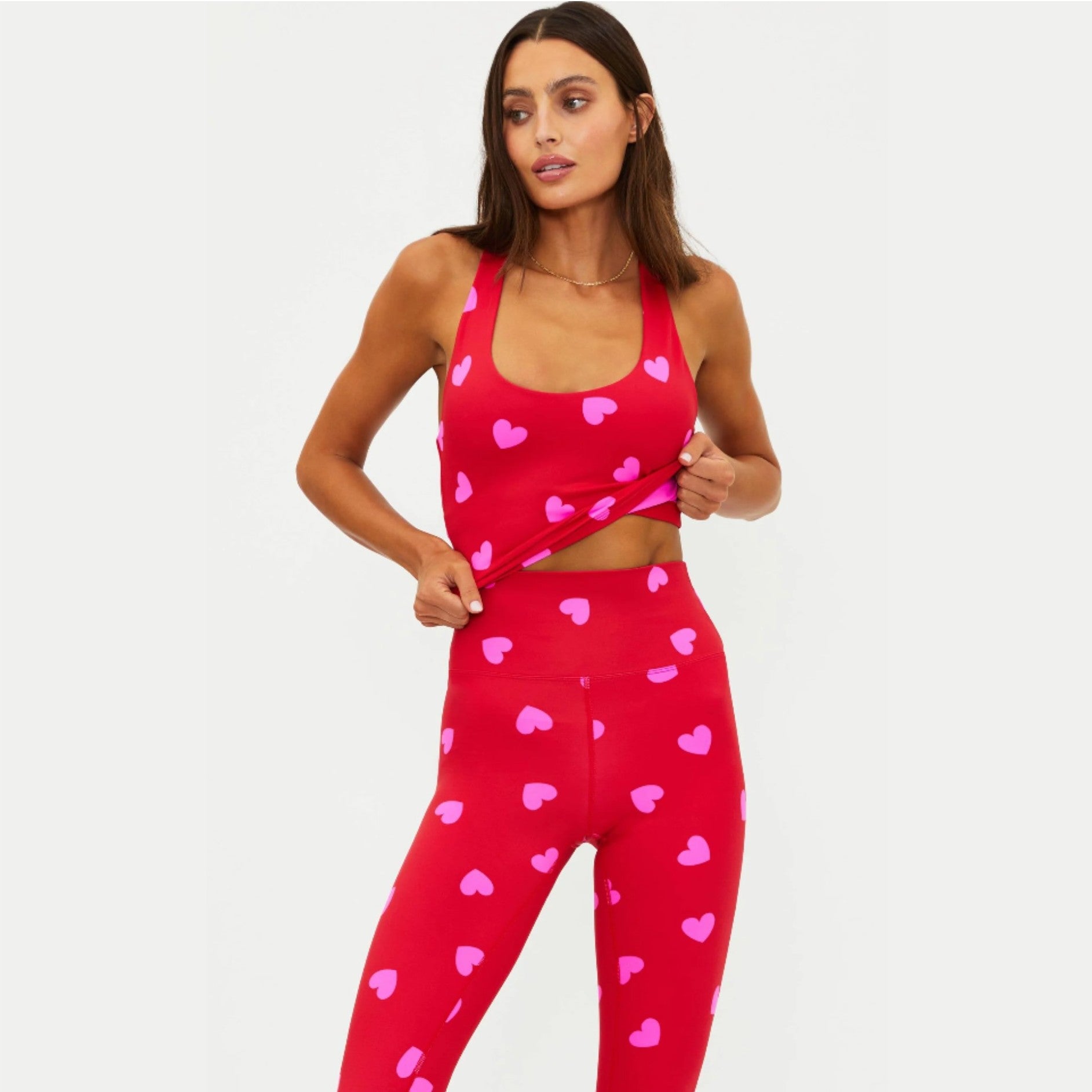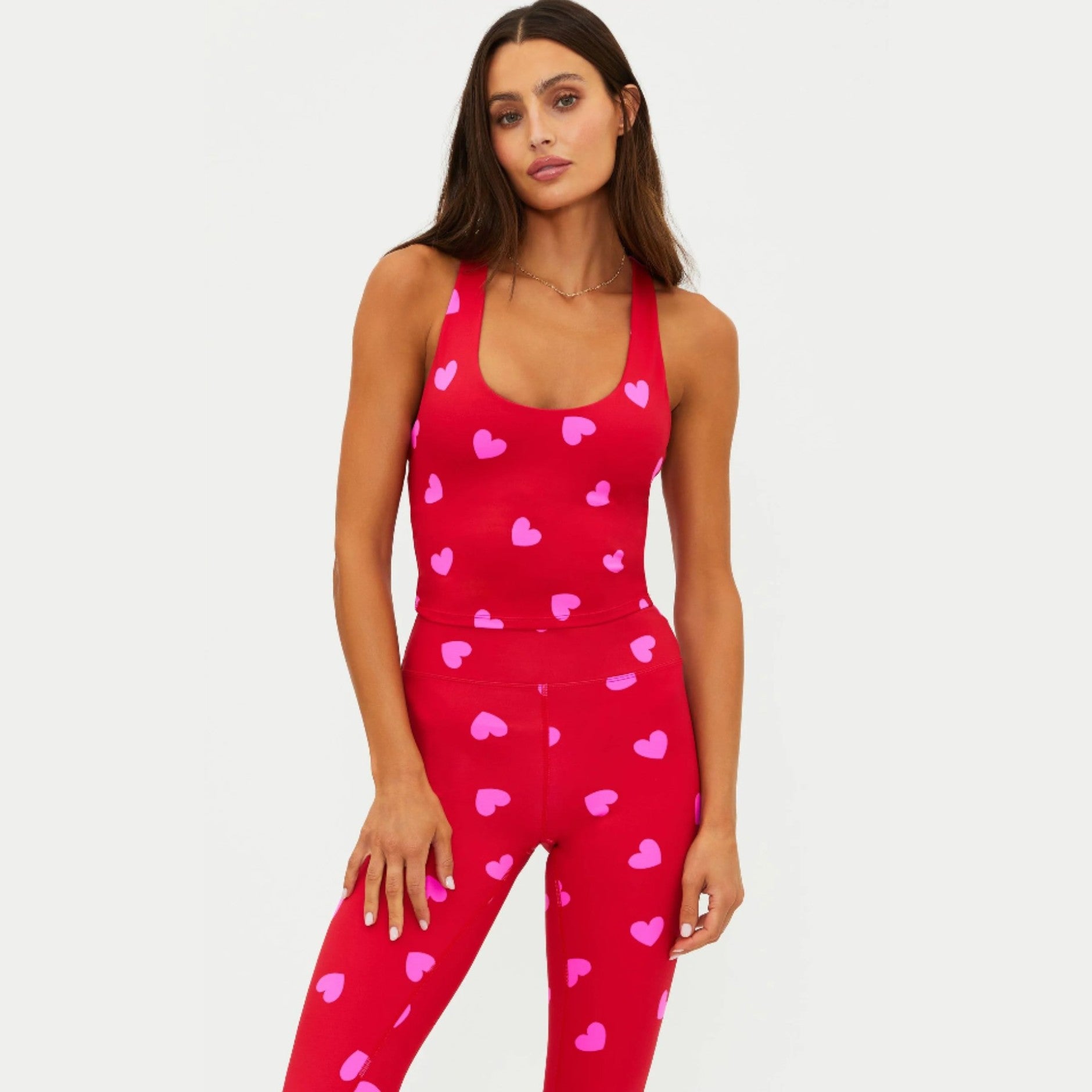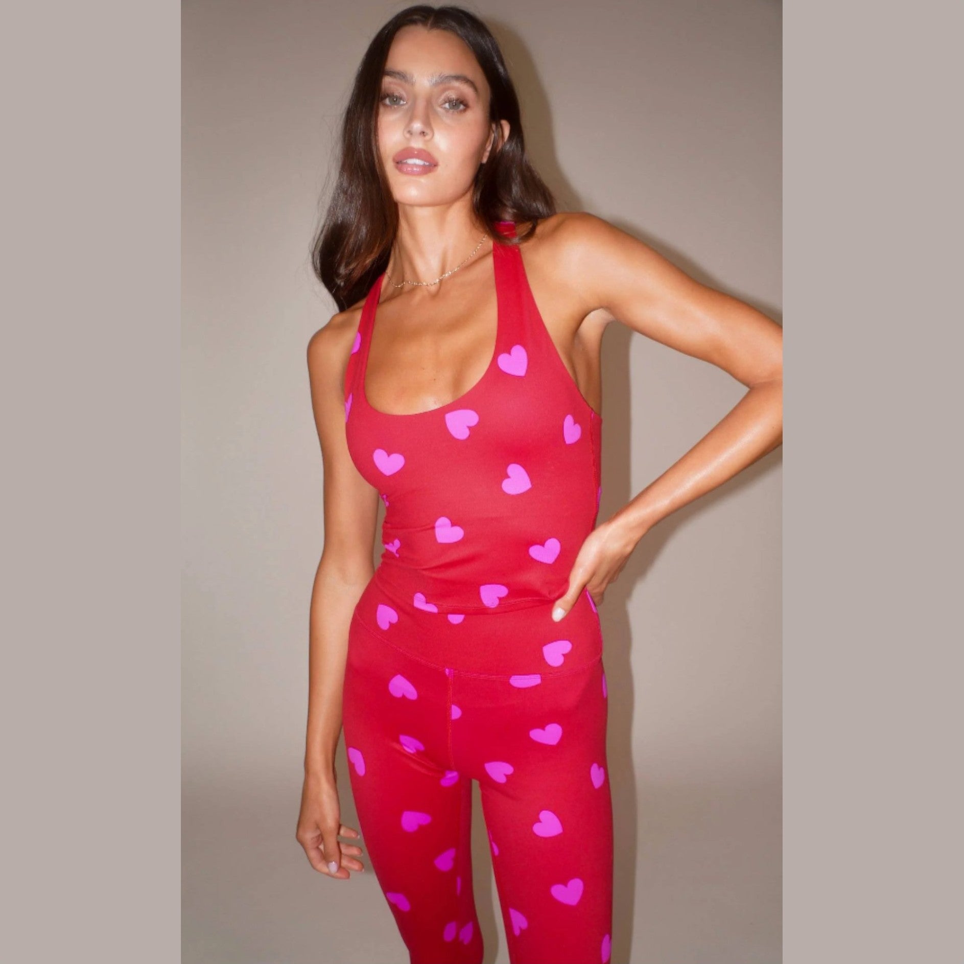 The Yara Top - Royal Red Hearts bring bold charm and flattering style to your activewear with its rich red hue and playful heart detailing. Designed to feel as good as it looks, this top features a supportive, comfortable fit made from soft, breathable fabric that moves wit you though Pilates, yoga, or everyday wear. Its sleek silhouette pairs effortlessly with leggings or joggers, while the vibrant color adds confidence and personality to any outfit. Equal parts fun and functional, it's the perfect piece for making a statement while staying comfortable and supported. Pair with the matching Piper Legging in Royal Red Hearts to make it a flirty, feminine set!