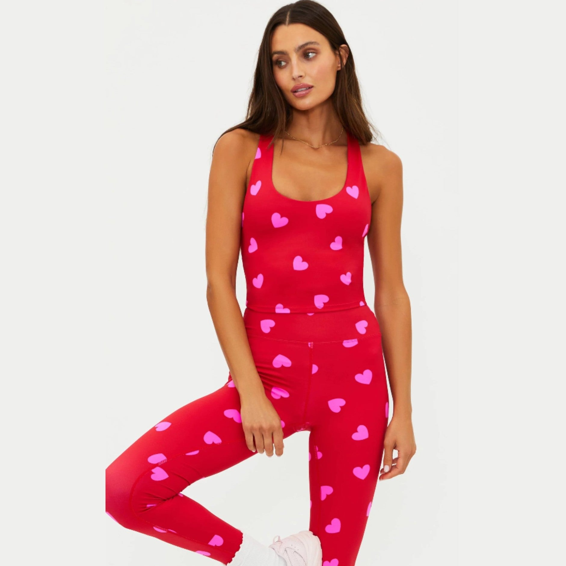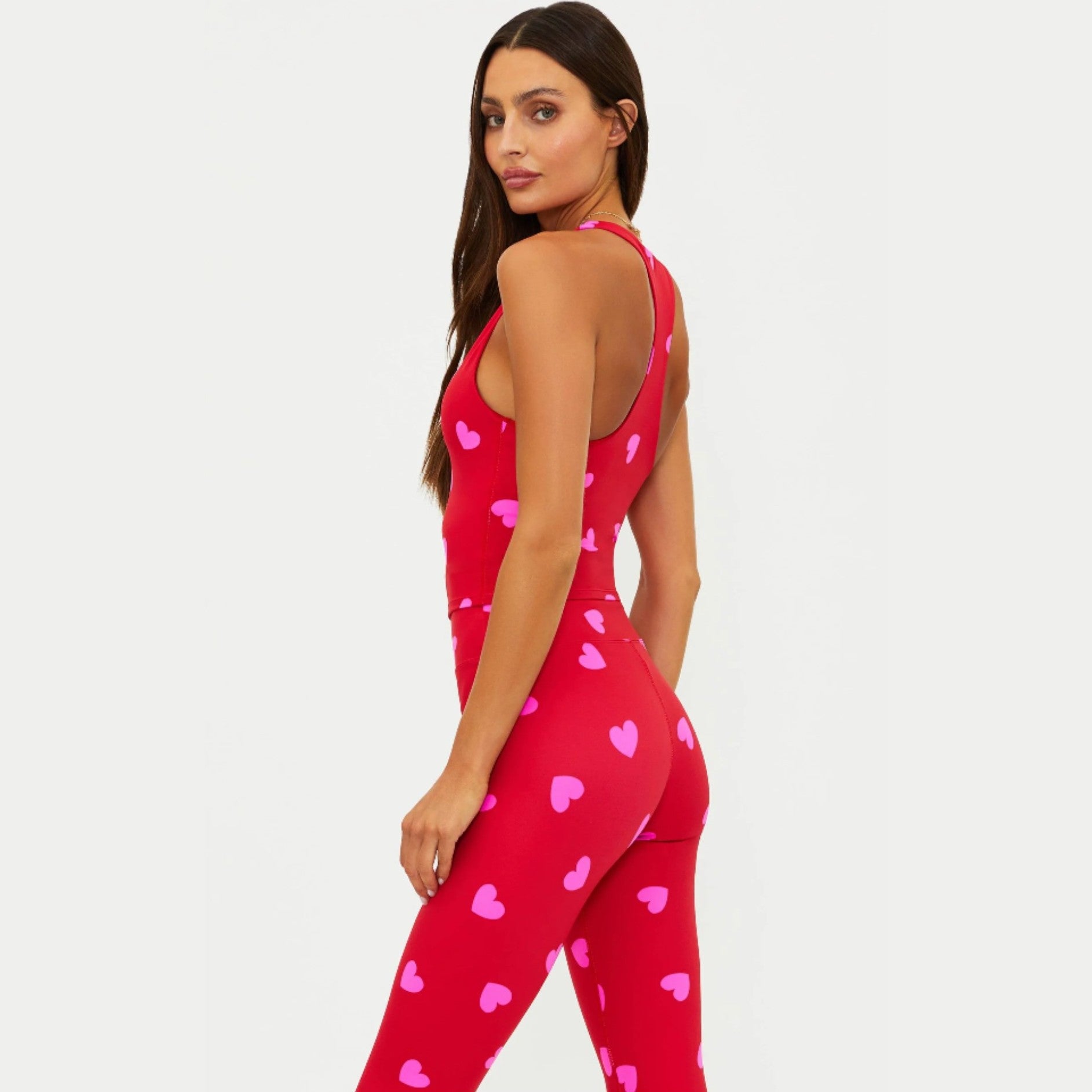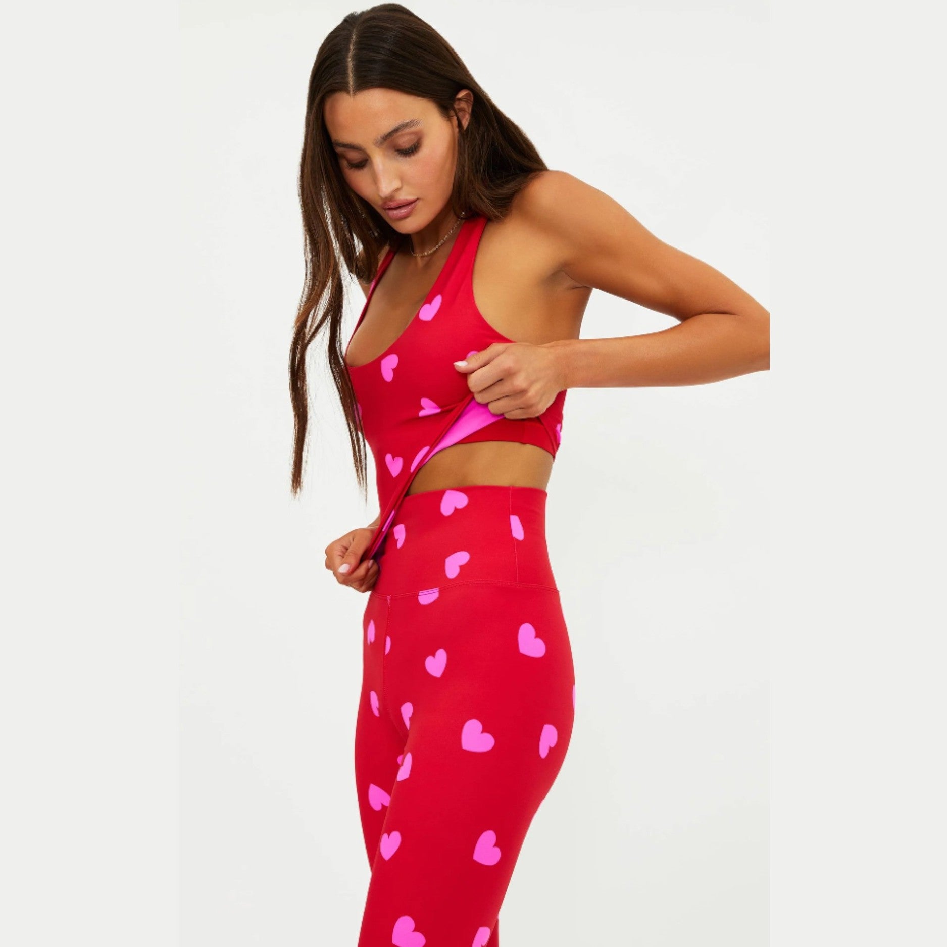 The Yara Top - Royal Red Hearts bring bold charm and flattering style to your activewear with its rich red hue and playful heart detailing. Designed to feel as good as it looks, this top features a supportive, comfortable fit made from soft, breathable fabric that moves wit you though Pilates, yoga, or everyday wear. Its sleek silhouette pairs effortlessly with leggings or joggers, while the vibrant color adds confidence and personality to any outfit. Equal parts fun and functional, it's the perfect piece for making a statement while staying comfortable and supported. Pair with the matching Piper Legging in Royal Red Hearts to make it a flirty, feminine set!