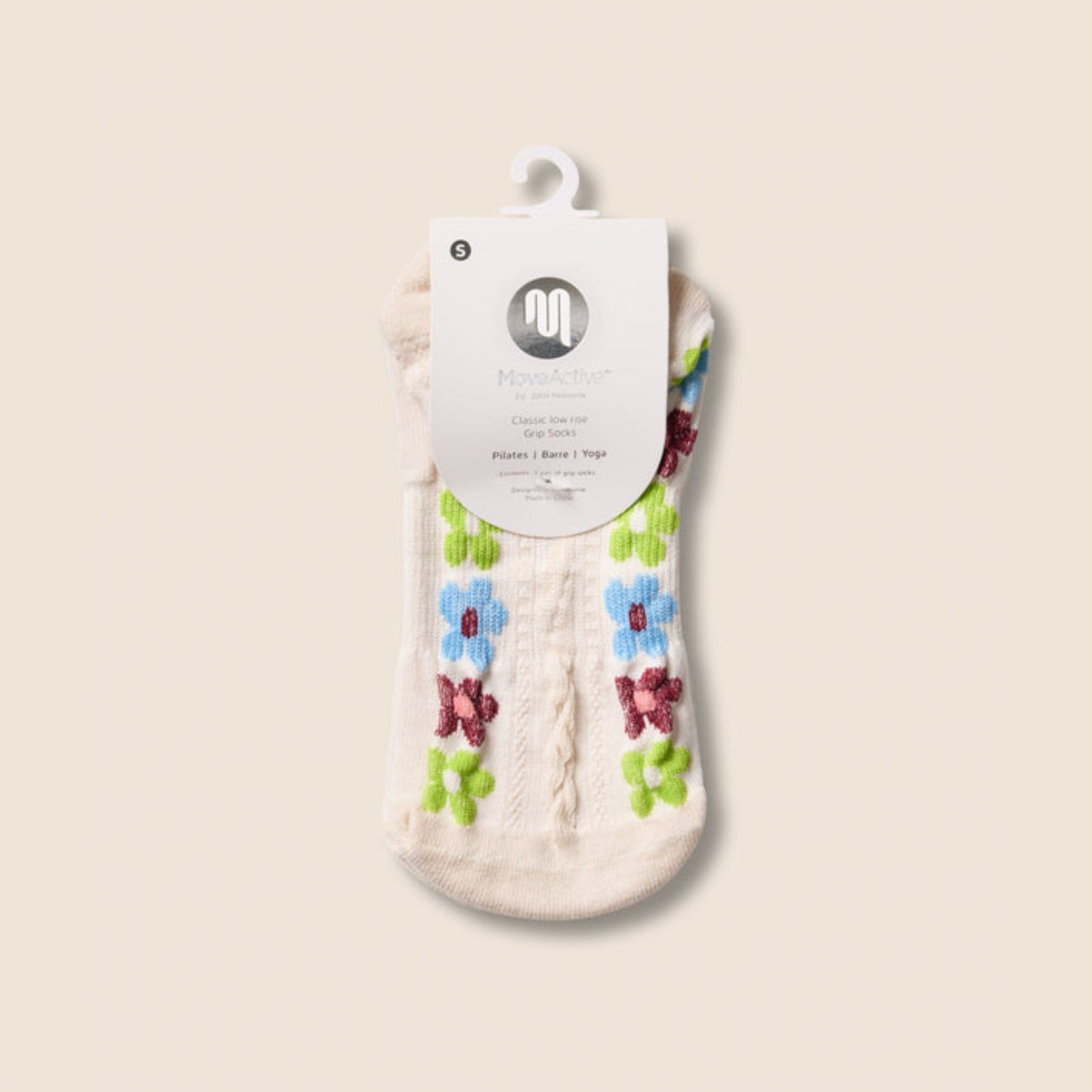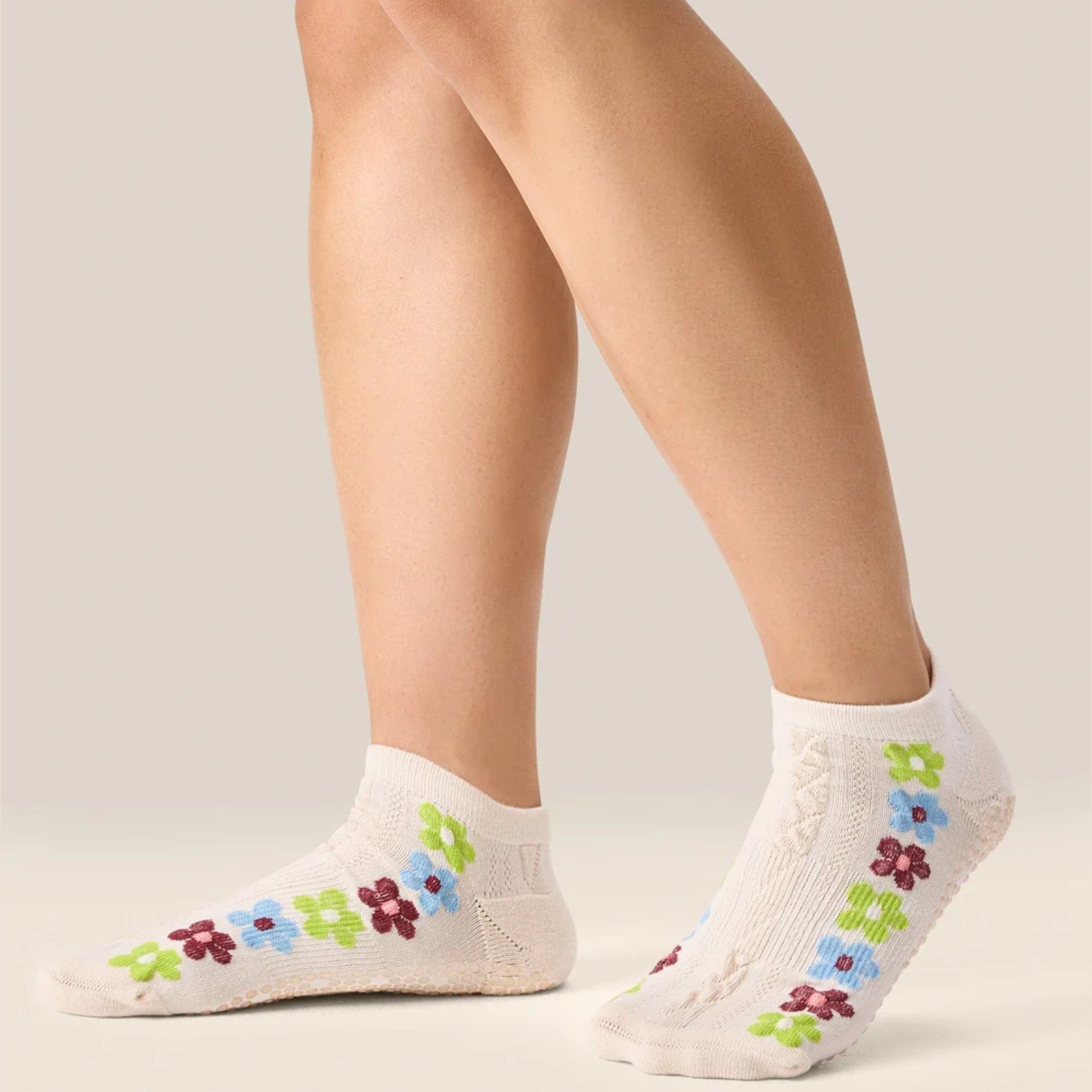 Who doesn't love florals? These crew socks from Move Active feature a classic ankle cut to keep your feet supported during any workout. Now in a textured cabled fabrication, finished with colorful flower design! With signature grip soles and arch support, they're crafted from deluxe cotton for ultimate comfort and breathability.