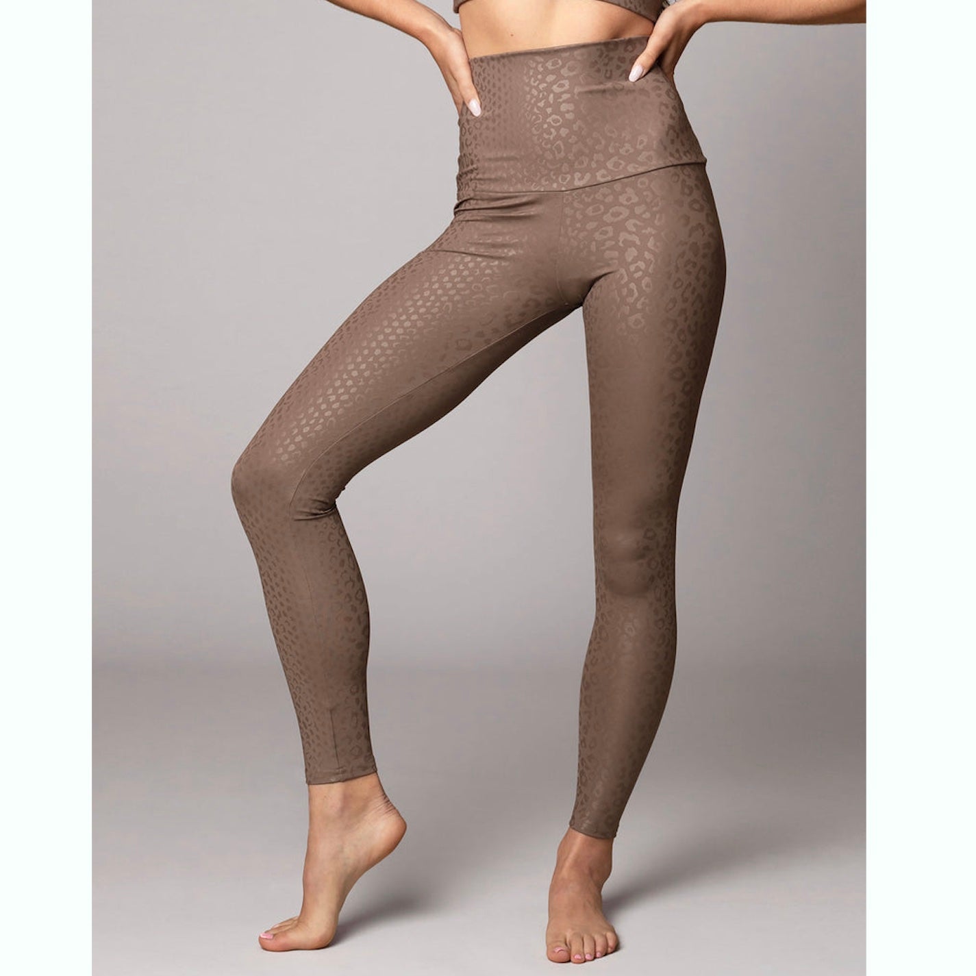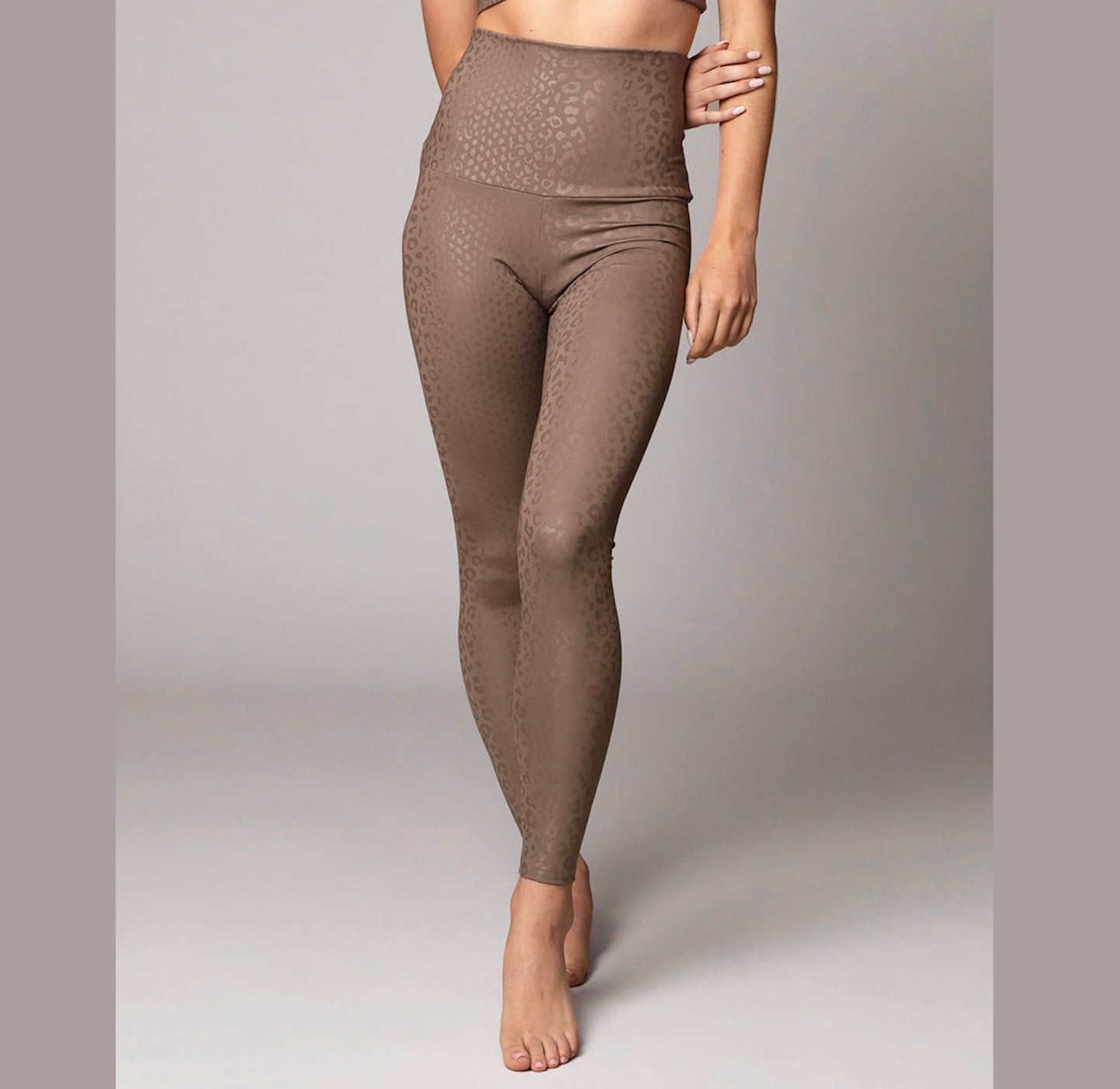 This stunning legging features a subtle glossy embossed latte leopard print for a sophisticated tone on tone look. The luxe performance fabrication provides the perfect amount of compression and support. Pair it with the matching Embossed Leopard Latte crop top to make it a set!  Now in a staple taupe hue!