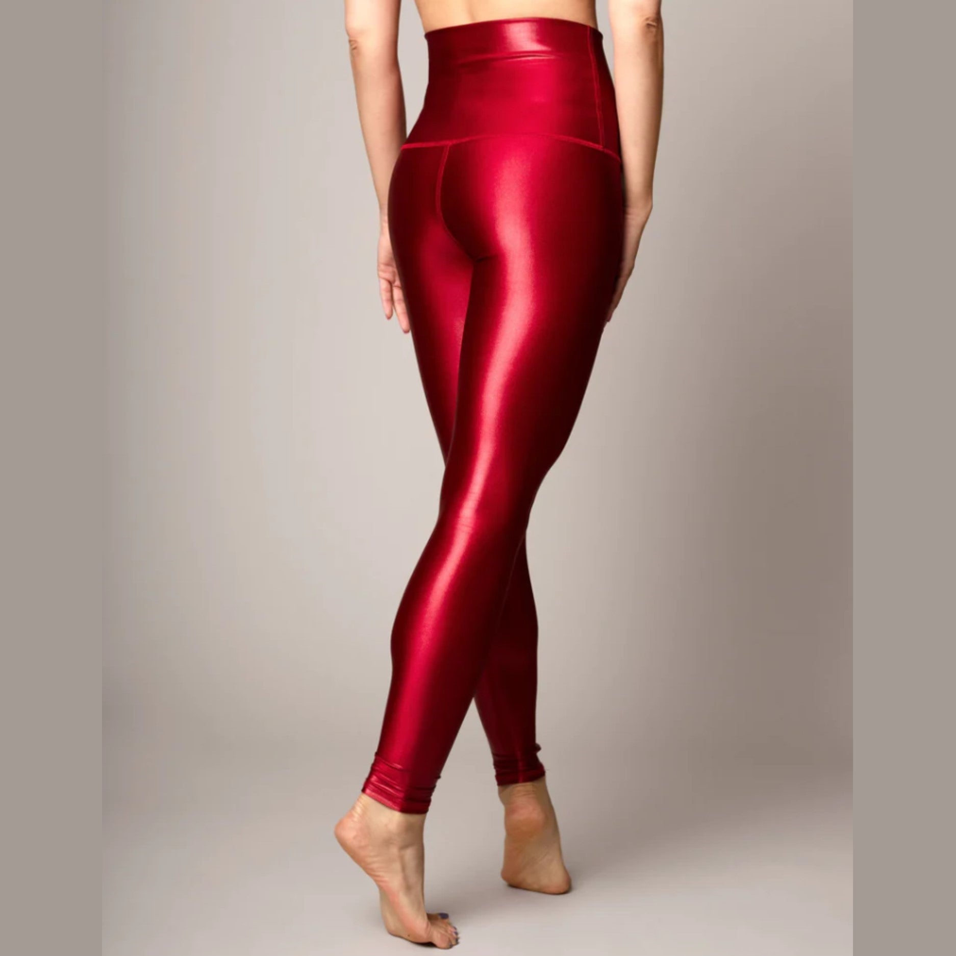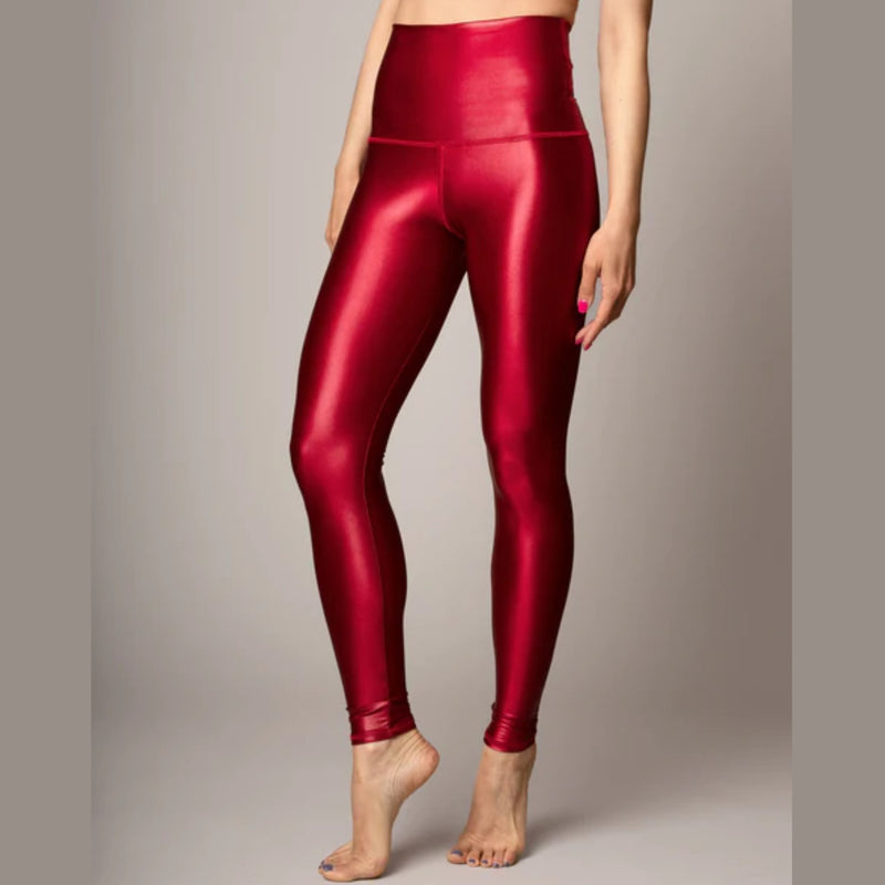 Hello, gorgeous.  This stunning legging features a shimmery and shiny finish in a sophisticated deep cherry red hue. The luxe performance fabrication provides the perfect amount of compression and support. Pair it with the matching Lacquer Red crop top to make it a set!