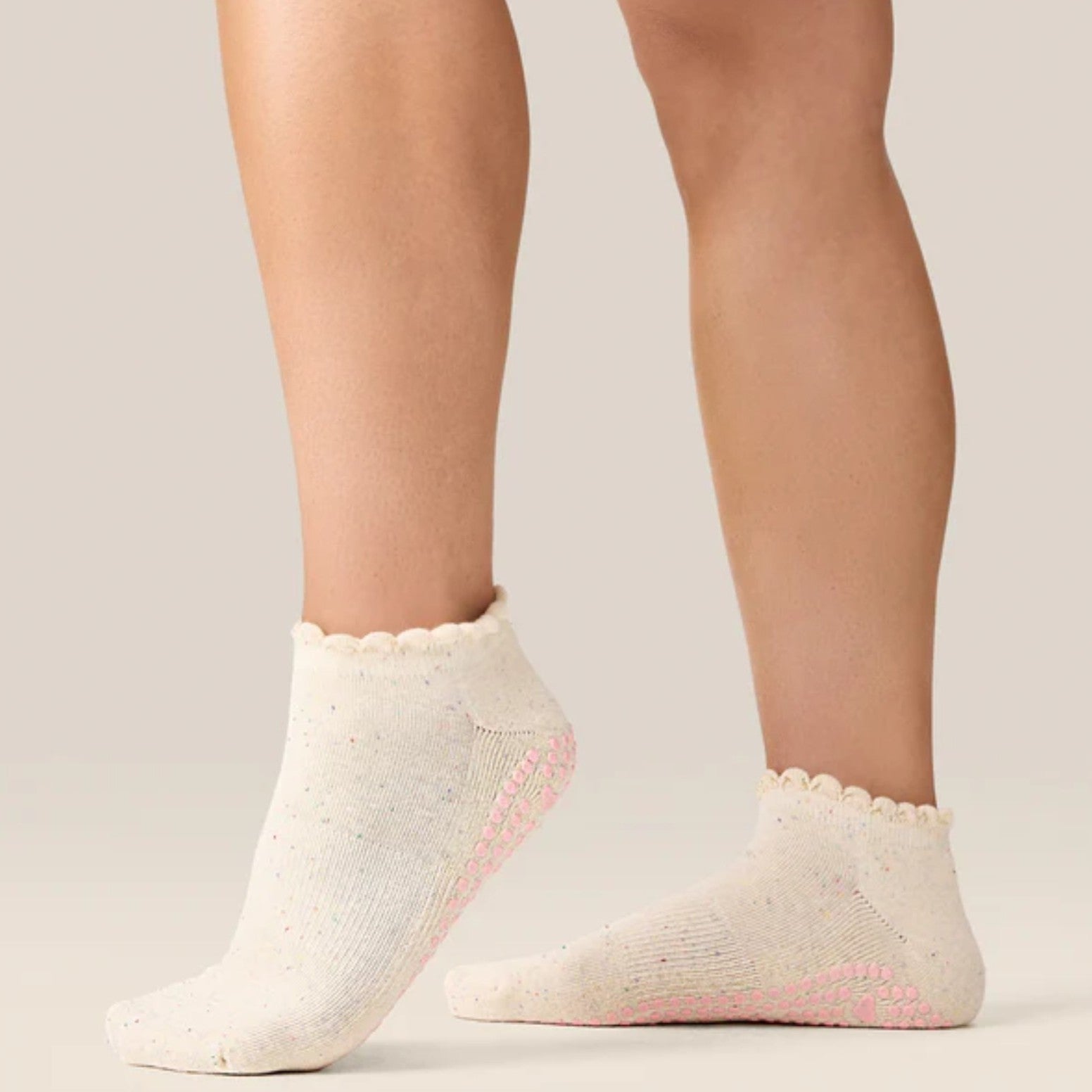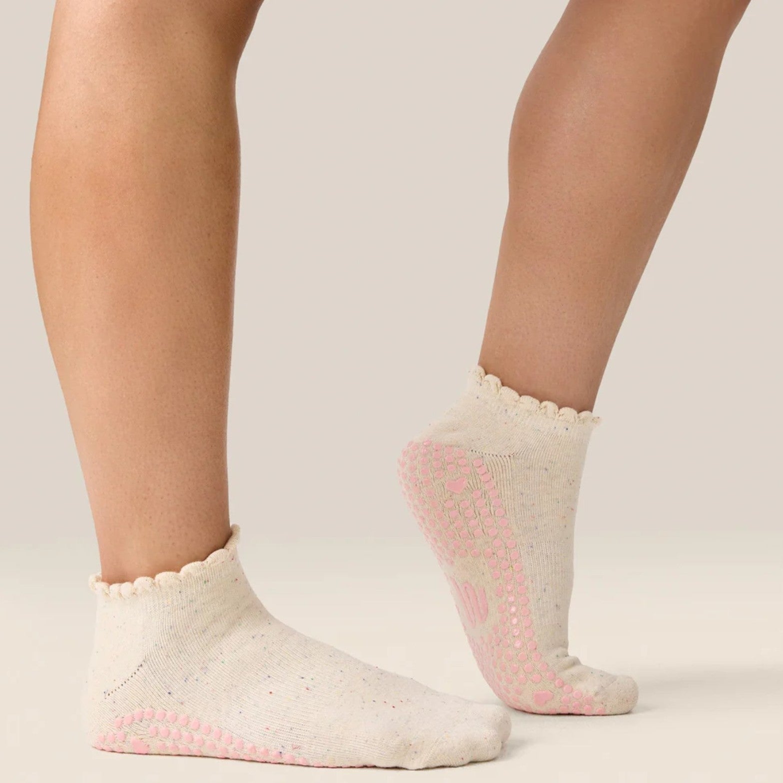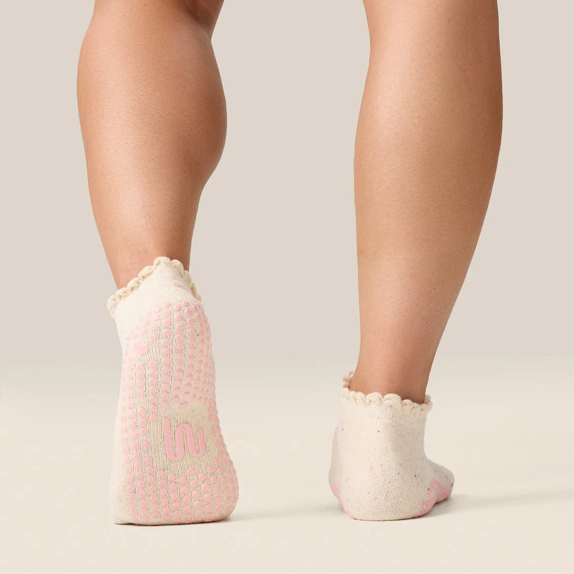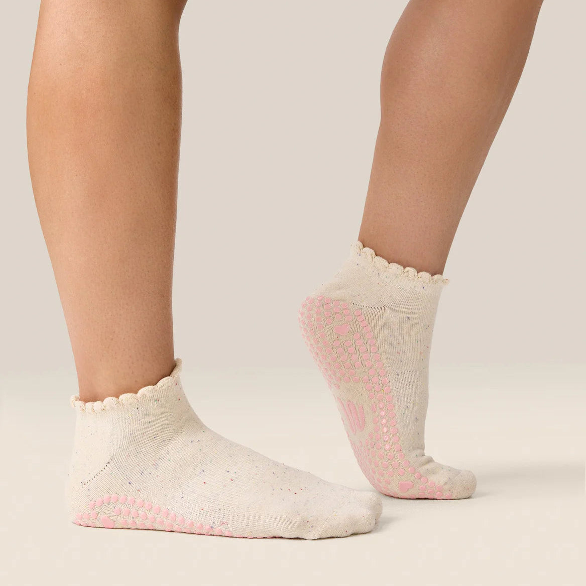 A little detail goes a long way! Flirty, sporty, and a lot chic! Featuring an ankle cut with simple ruffled detail on top! These non-slip socks are a staple in and out of the studio. With signature grip soles and arch support, they're crafted from deluxe cotton for ultimate comfort and breathability.