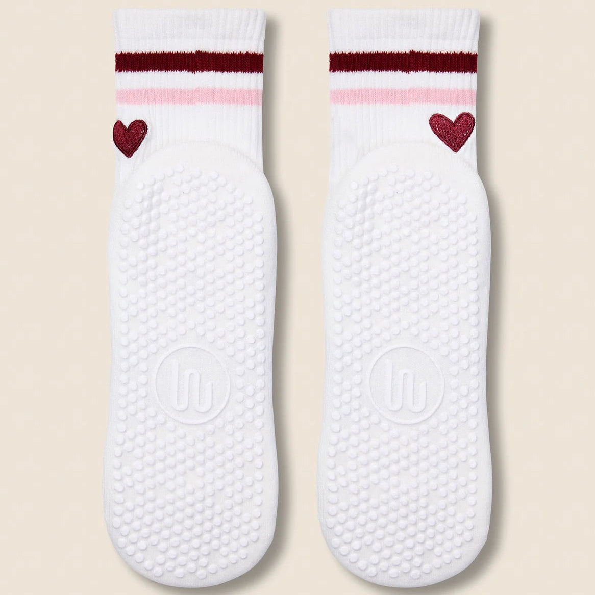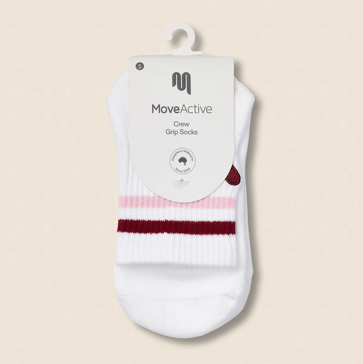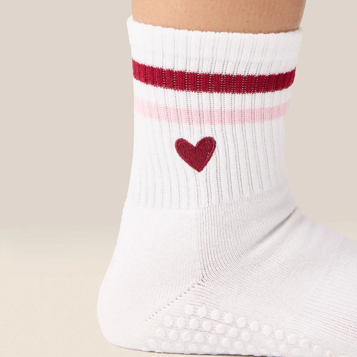You'll love these Sweet Love Stripe grippy socks from Move Active - feature a mid-calf crew cut to keep your feet and ankles warm during any workout. With signature grip soles and arch support, they're crafted from deluxe cotton for ultimate comfort and breathability.