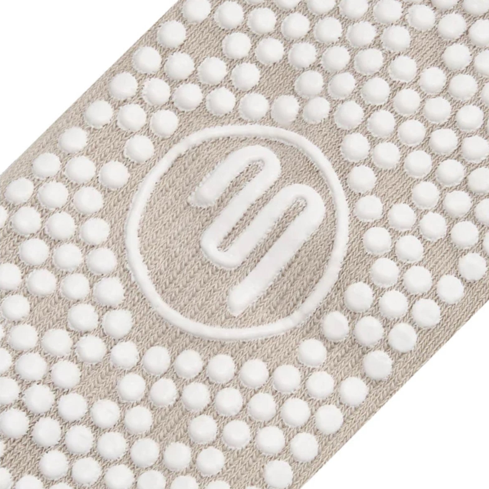 The Scrunch Oat Emerald Stripe Grip Socks blend cozy texture with a sporty, elevated design, making them a standout for any studio or lounge day. Featuring a soft oat base accented with bold emerald stripes, these socks strike the perfect balance between comfort and style. The signature scrunch detail adds a relaxed, slouchy look, while premium nonslip grips ensure stability through every Pilates, yoga, or barre session. Crafted from plush, breathable fabric, they keep your feet supported and secure bringing effortless charm and performance to every move.