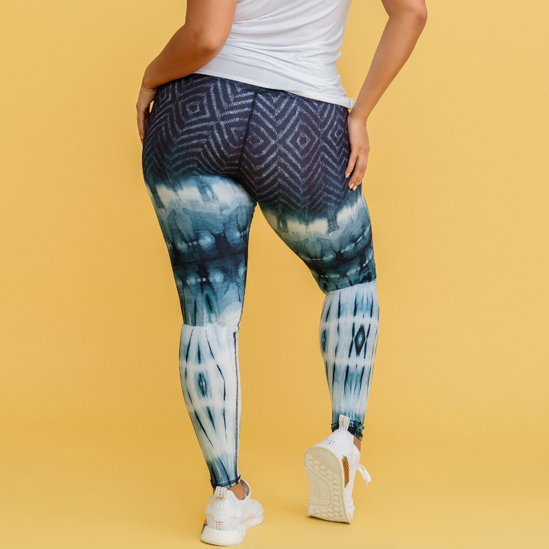 A gorgeous new design Japanese inspired print by Niyama Sol to add to your workout wardrobe. The Kuro Shiro leggings feature a one of a kind dyed-print in rich blue hues. The leggings are made from eco-conscious fabric and are soft to touch. The high waist can be worn up or rolled down depending on your preference.