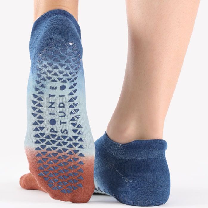 A watercolor-inspired, tie-dyed colored style that features a gorgeous ombre-dyed look. Cushioned soles allow for added comfort for your pilates, barre, or yoga class. Now available in a gorgeous coastal evening sunset design!