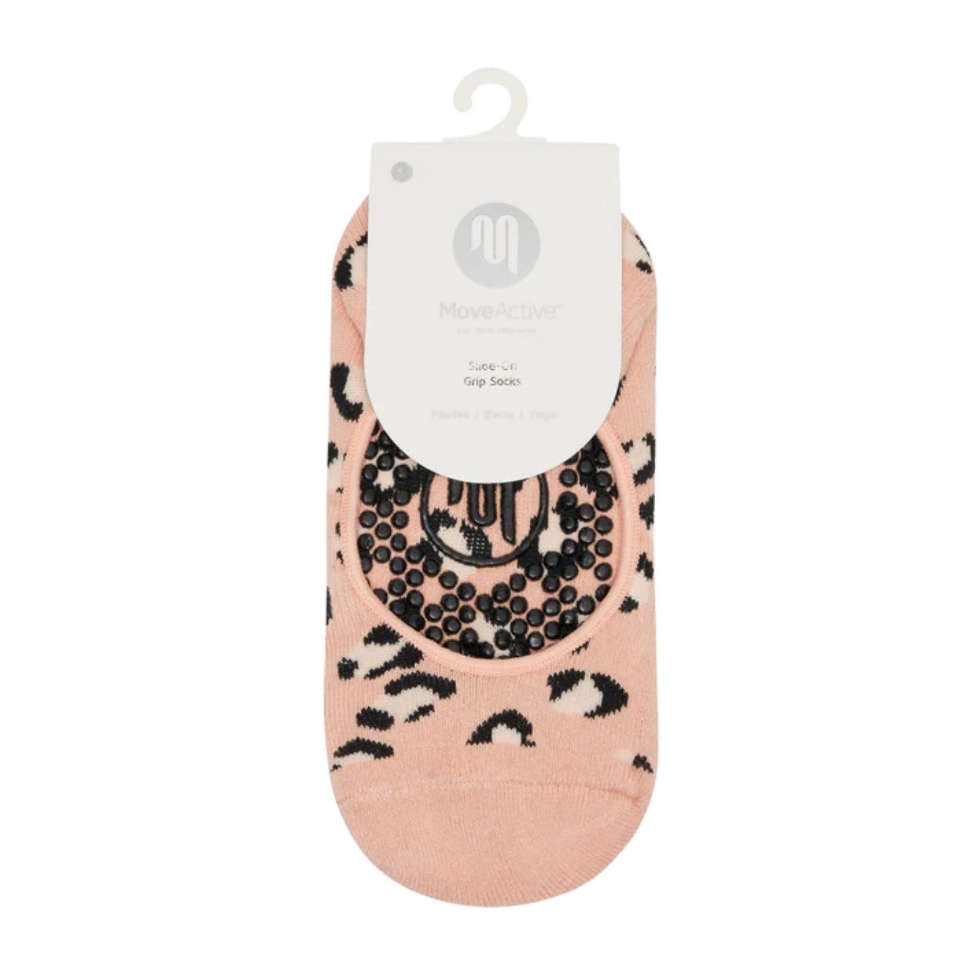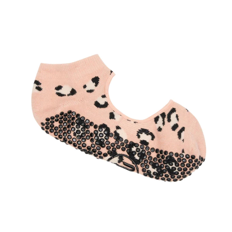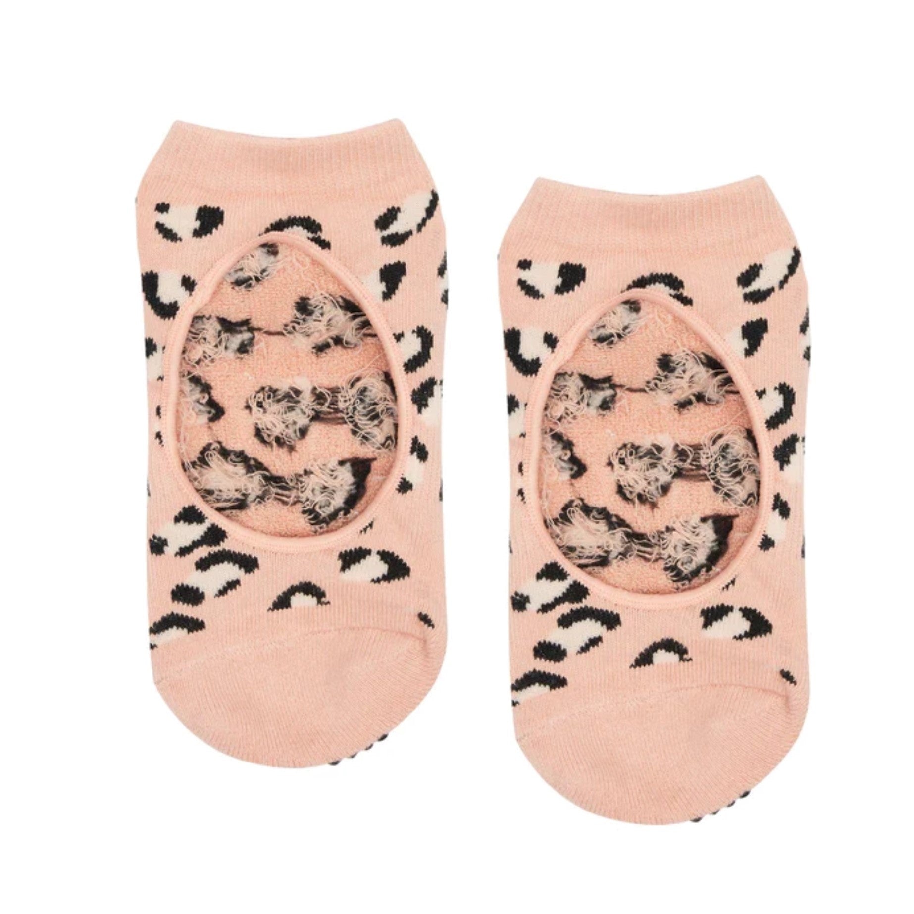 Slide On Grip Socks - Peach Cheetah (Barre / Pilates)