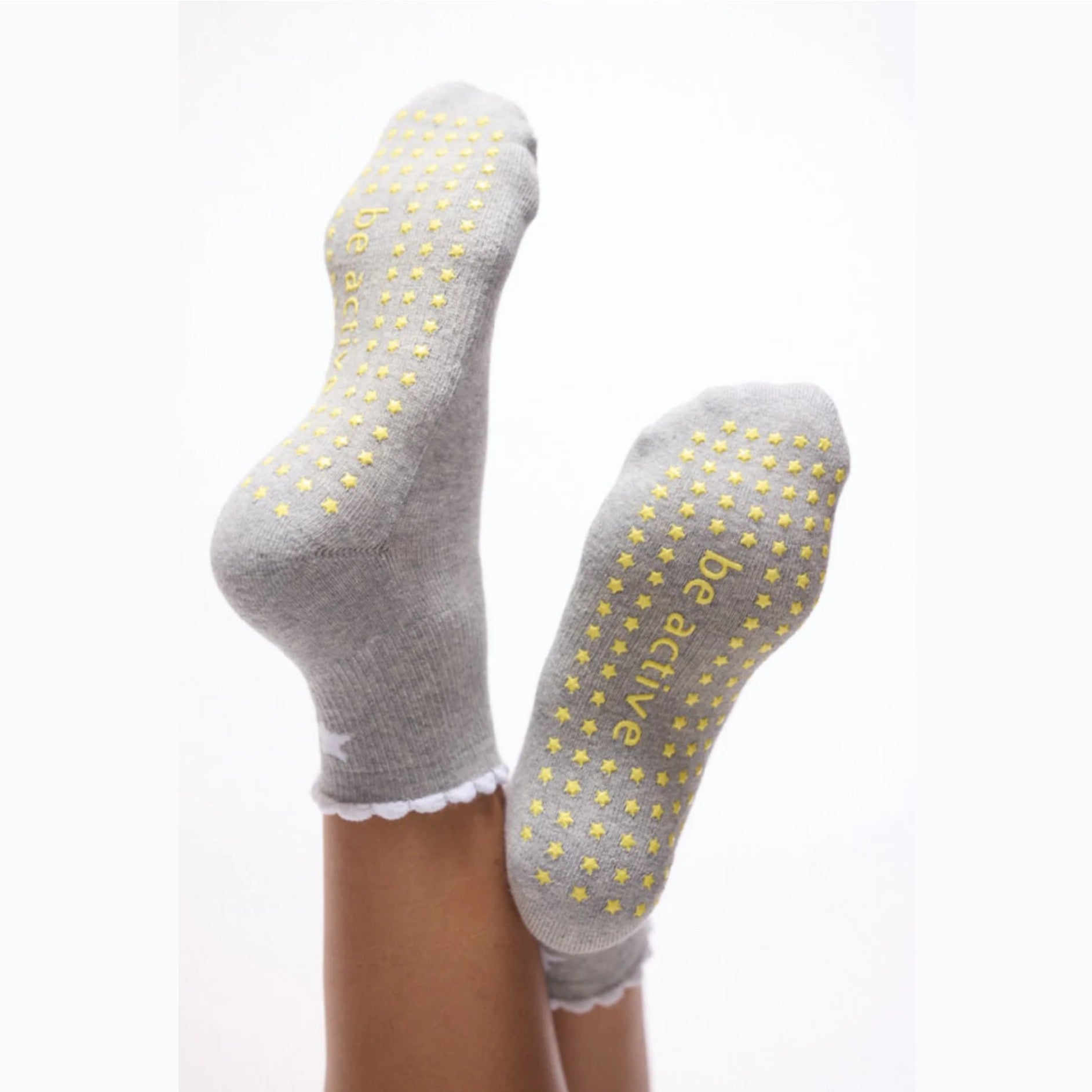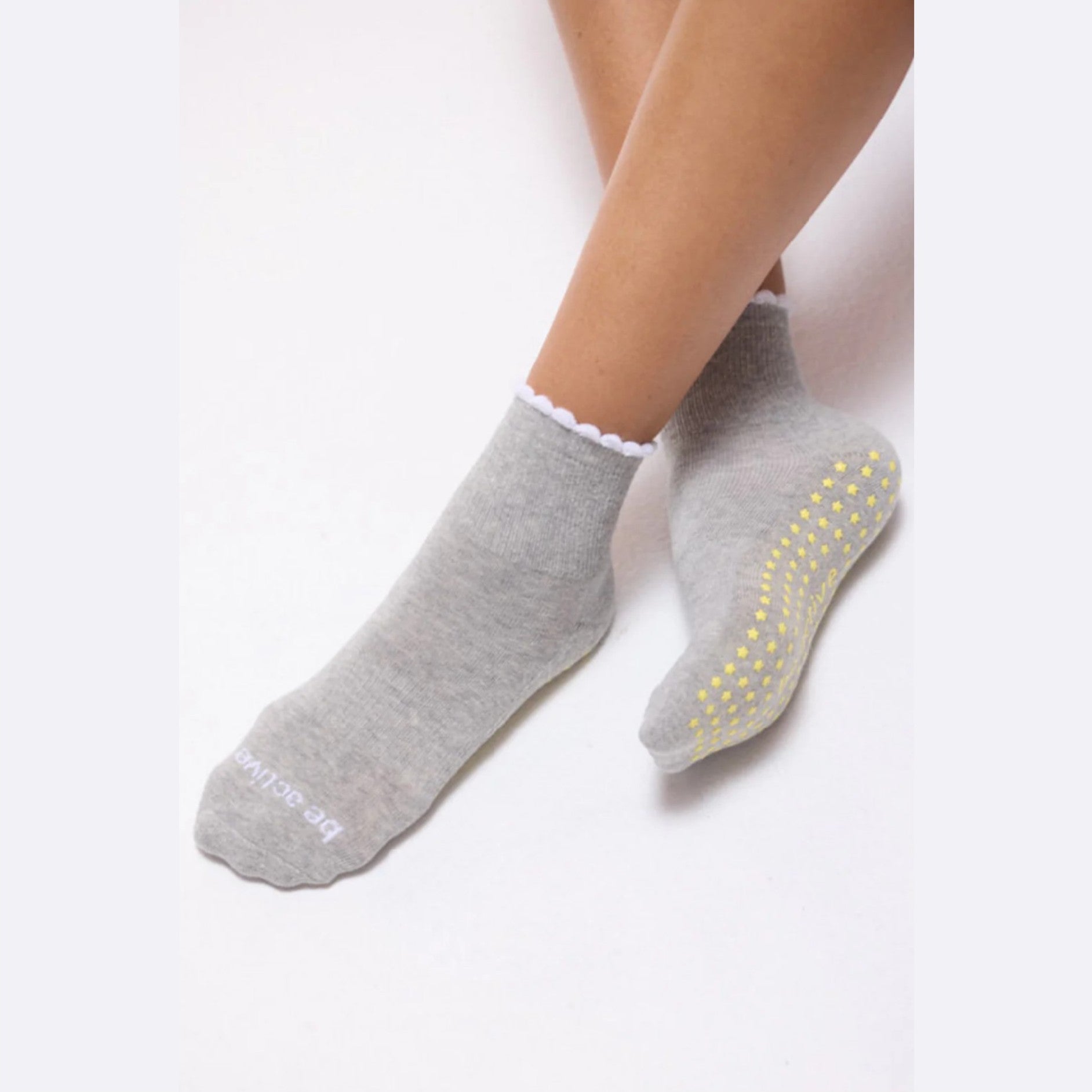 The Embroidered Short Crew Grip Socks bring instant positivity to your routine with their cheerful scalloped design and playful, feel-good vibe. Their short-crew height offers the perfect blend of comfort and coverage, while the soft, breathable fabric keeps your feet cozy through every move. Designed with premium nonslip grips, these socks help you stay steady and confident during Pilates, yoga, barre, or any moment you need a boost. Lighthearted, uplifting, and effortlessly cute, they add a bright little reminder to carry happiness with you-one step at a time.