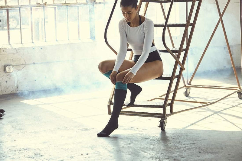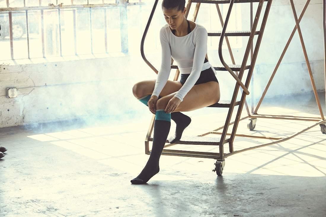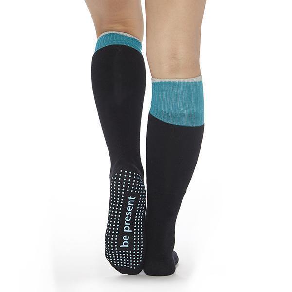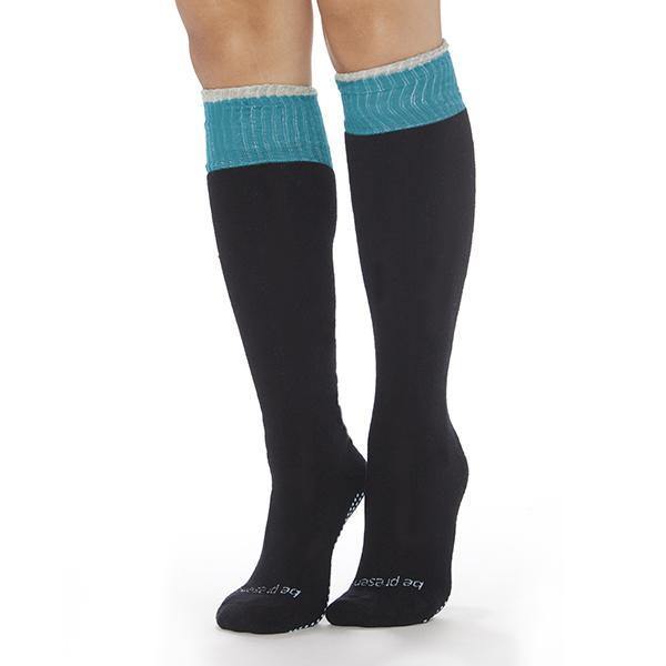 Be Present Knee High Grip Socks - Black Teal (Barre / Pilates)