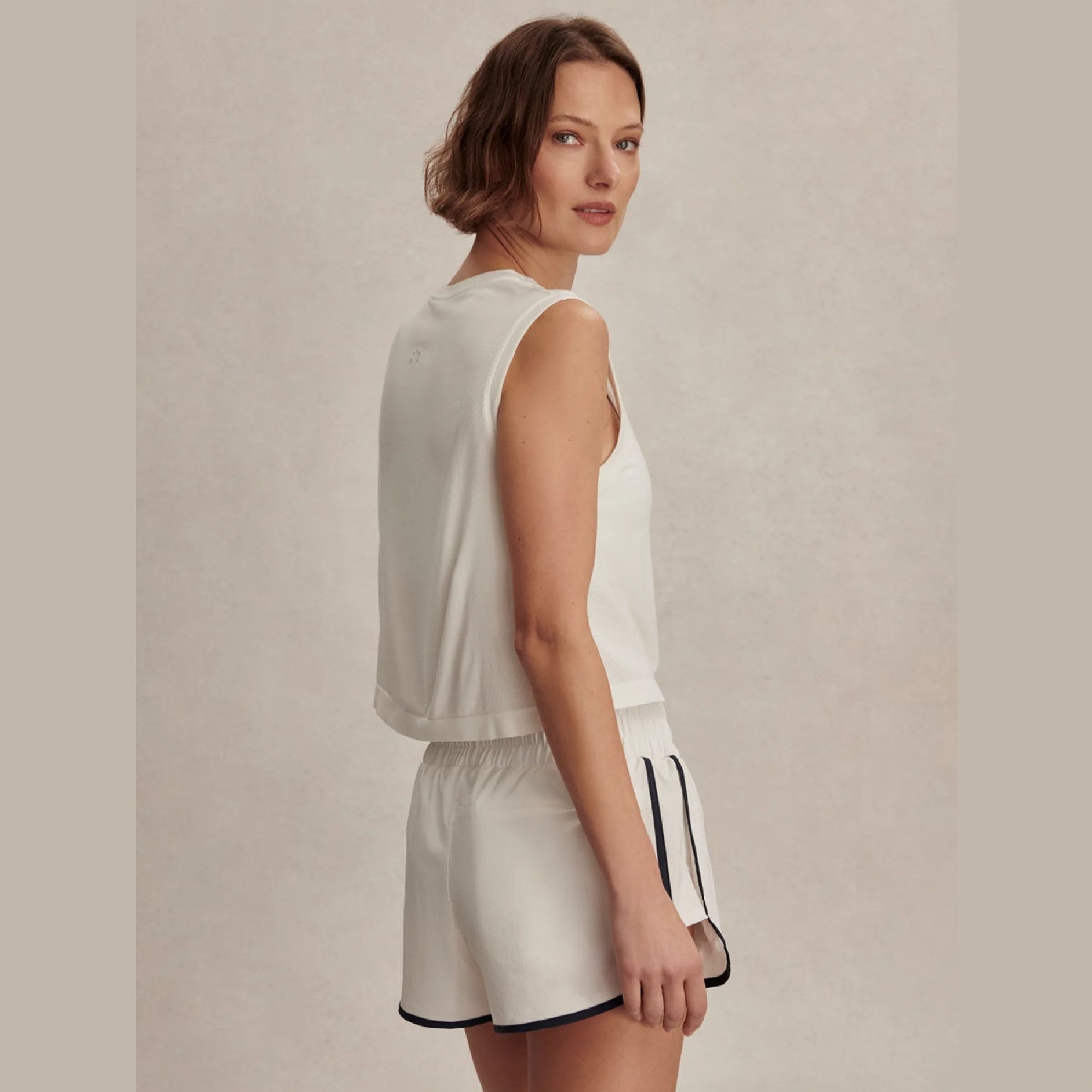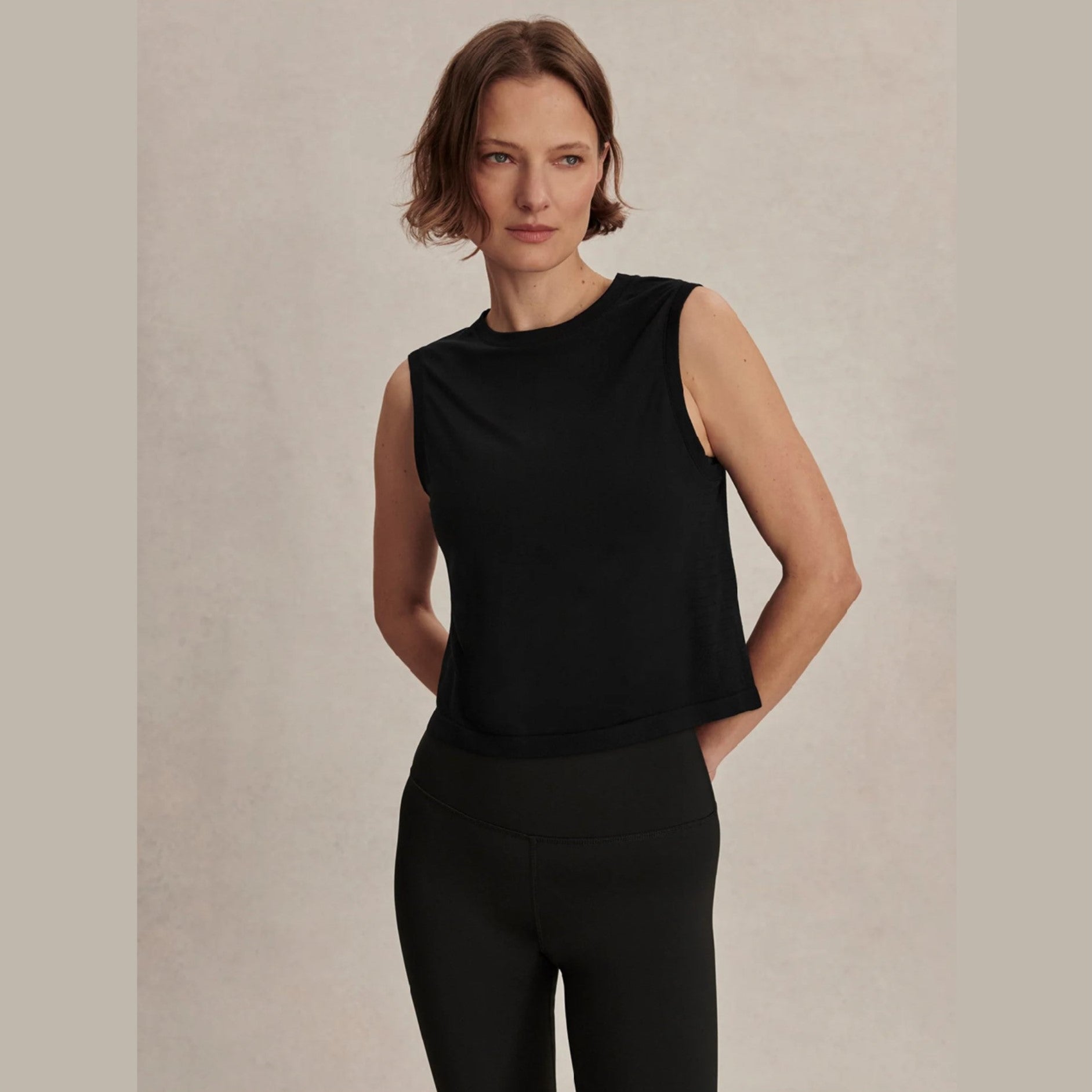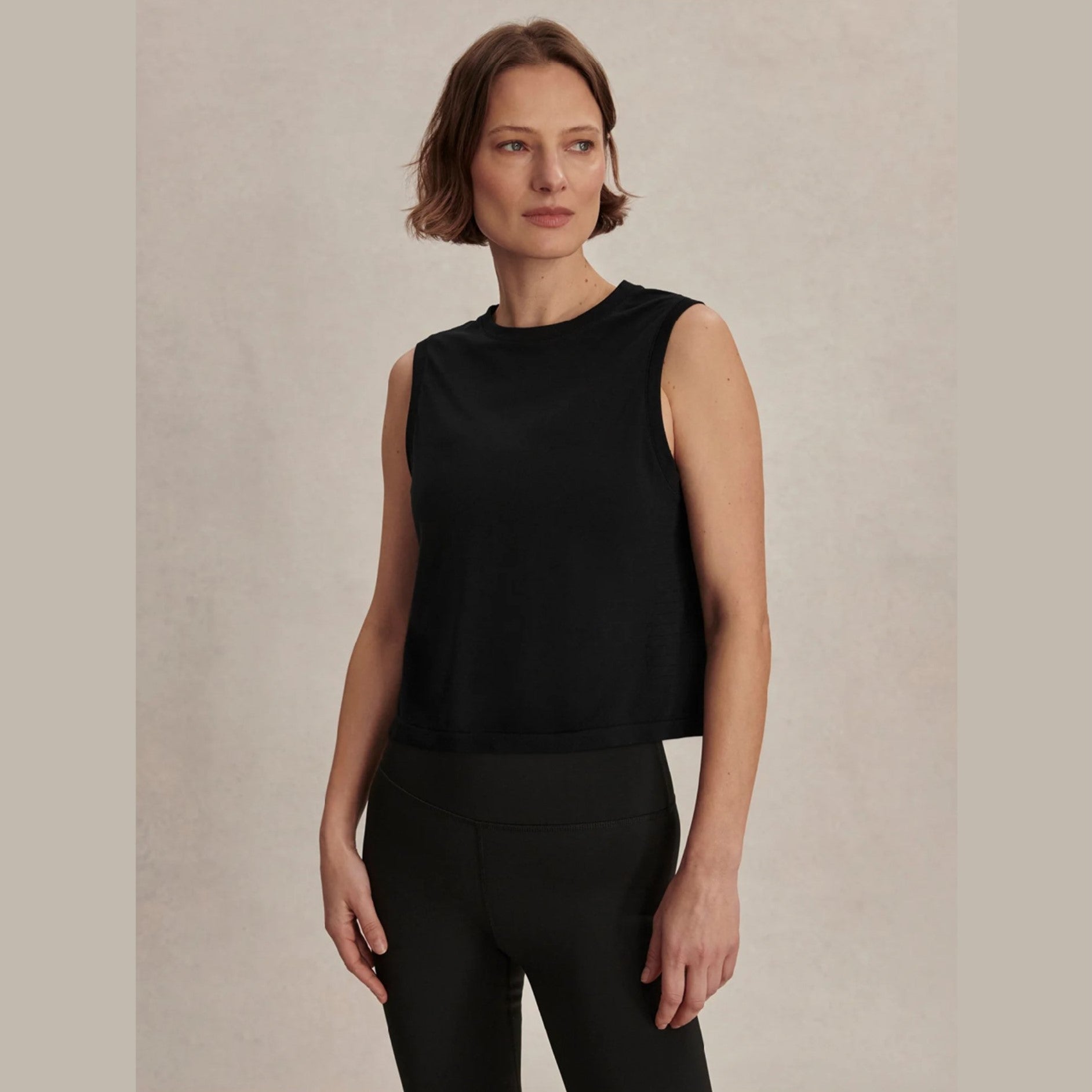 Crafted from an ultra-soft Modal Seamless fabric, the Nate cropped tank is a lightweight active tee designed for effortless comfort and a natural feel through every movement. Cut in a long crop with a relaxed, boxy silhouette, it layers perfectly over your favorite active bra. Finished with subtle texturing and stitching details. Now available in black and white!